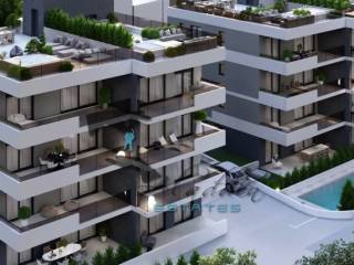 Residential building under construction in Okrug Gornji with eight apartments, two per floor. Available is penthouse apartment S8 on the second floor which consists of the living room and kitchen as one unit, hallway, entrance hall, two bedrooms, two bathrooms and a covered terrace. The apartment includes two outdoor parking spaces as well as a beautiful roof terrace that will have its own entrance doors and installed electrical installations, hot and cold water, drainage, TV, satellite and internet sockets, as well as ambient LED lighting. The owner will be able to set up a jacuzzi, pergola, sun loungers, summer kitchen, electric grill as well as solar panels for water heating.