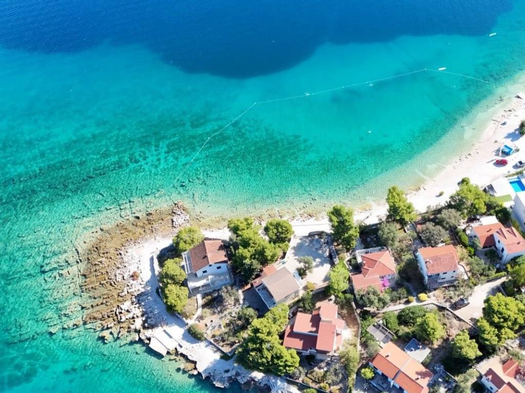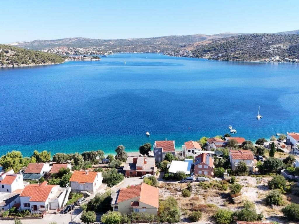 Na prodaju je jedinstveno građevinsko zemljište u malom mjestu pored Rogoznice. Jedna od rijetkih dostupnih parcela na ovom području.   Zemljište krasi otvoren pogled na more i predivne zalaske sunca. Sva infrastruktura i priključci su dostupni na zemlji. Pristupni asfaltirani put je s tri strane te je pristup parceli iznimno jednostavan. Površine 900 m2.   Pravomoćna građevinska dozvola je ishodovana, prijavljen je i početak gradnje, napravljeno poravnavanje zemljišta, iskolčenje i jedna septička jama, te su plaćeni komunalni doprinosi i sva projektna dokumentacija. Ishodovana građevinska dozvola je za dvojni objekt s 15 jednosobnih stanova i pripadajući parking.   Udaljenost od mora je 50m, a od glavne plaže 100m.   Neto površina:   1. objekt 3 x 43,80 = 131,40 m2 3 x 41,18 = 123,54 m2 UKUPNO: 254,94 m2   2. objekt 3 x 37,02 = 111,06 m2 3 x 43,50 = 130,50 m2 3 x 38,06 = 114,18 m2 UKUPNO: 355,74 m2