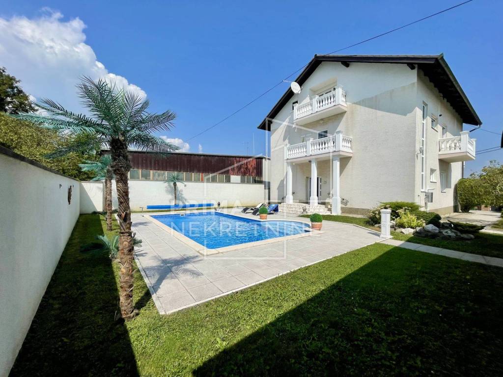 The yard is spacious and beautifully decorated, and consists of a swimming pool, summer kitchen and two garages.