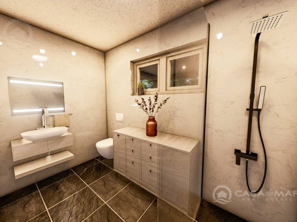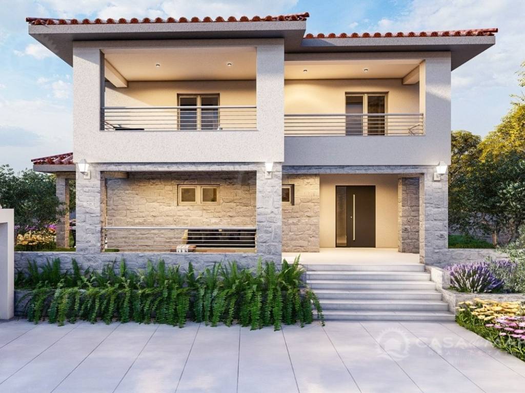 The ground floor and the first floor are identical and consist of a living room, kitchen + dining room, toilet, bathroom, three bedrooms and an exit to the terrace/outlet, i.e. from the first floor to two balconies.