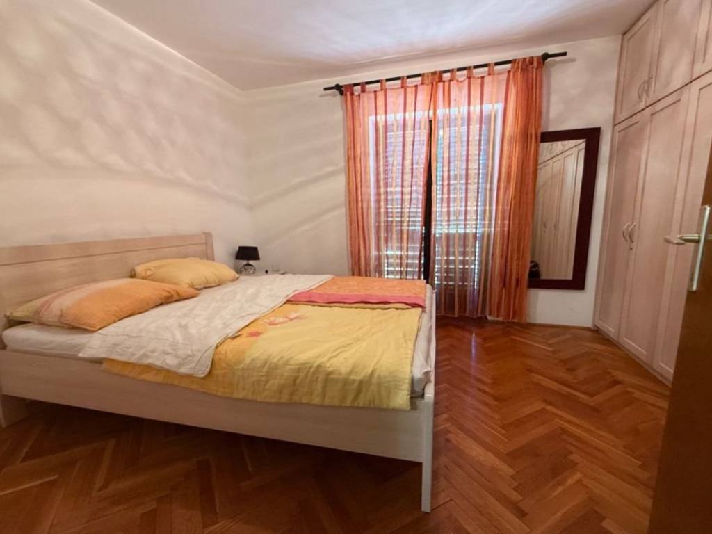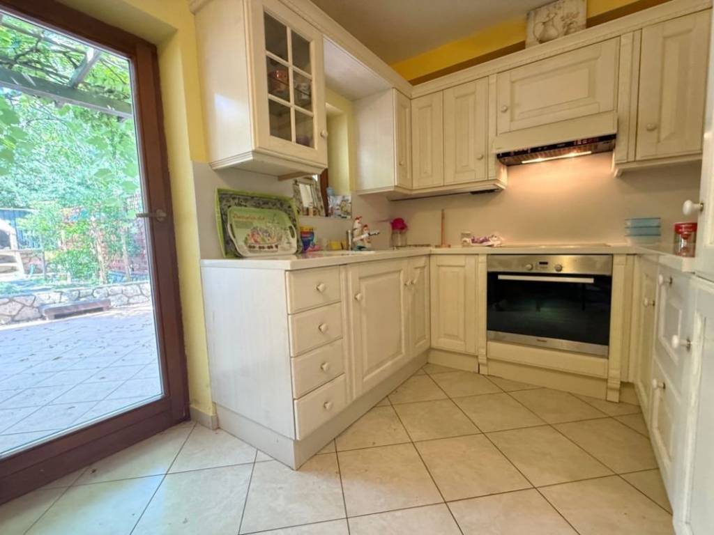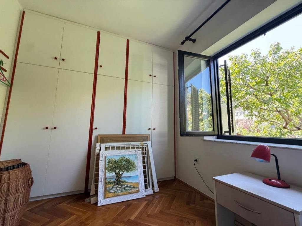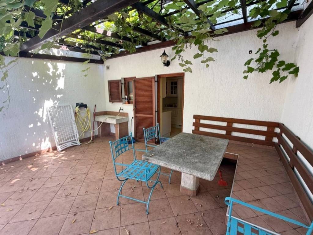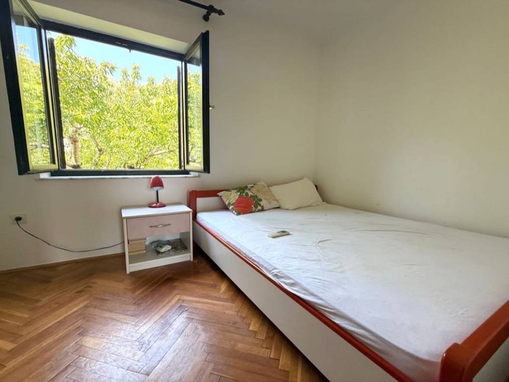 Otok Krk, Baška, prodaja kuće u nizu površine 60 m2, s okućnicom od 60 m2 i pogledom na more, na mirnoj lokaciji, 80 m od plaže. Kuća se sastoji od prizemlja s dnevnom sobom, kuhinjom i blagovaonom, spremištem, prednjom i zadnjom terasom s izlazom na okućnicu te prvog kata s dvije spavaće sobe, kupaonicom i terasom. Klimatizacija, parkirno mjesto.
