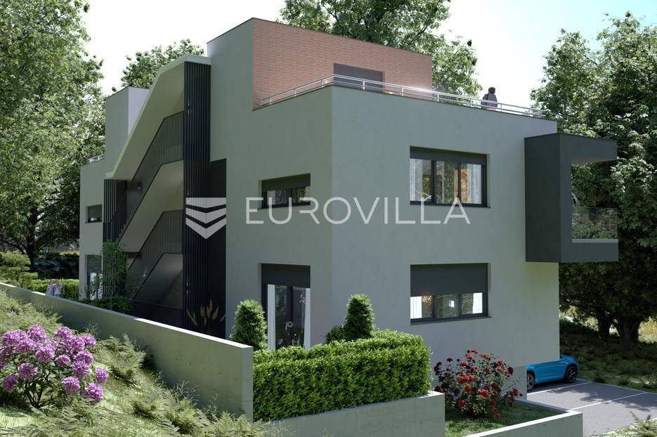 Zagreb, Gornje Vrapče - Na prodaju je odličan četverosobni penthouse zatvorene površine 61 m² s terasom od 63 m2 i vlastitom garažom od 18 m² te vanjskim parkirnim mjestom na vrlo dobroj lokaciji i prekrasnim pogledom.Vrhunski projekt armiranobetonske novogradnje s ukupno 5 stanova, smješten u povišenom dijelu Gornjeg Vrapča. Projekt se odlikuje kvalitetnom gradnjom i modernom opremom renomiranih proizvođača.Stan na prvom katu se sastoji od prostranog dnevnog boravka s kuhinjom i blagovaonicom, dvije spavaće sobe, radne sobe, kupaonice, zasebnog WC-a, hodnika. Terasa nudi idealan prostor za opuštanje u privatnosti, a garaža i parkirno mjesto dodatnu praktičnost u svakodnevici.Lokacija je vrlo mirna, okružena zelenilom, s otvorenim pogledom na Medvednicu. U blizini se nalaze škole i vrtići, što čini ovu nekretninu odličnim izborom za obiteljski život.Početak gradnje je lipanj 2025, a očekivani završetak kraj 2026.Za više informacija slobodno nas kontaktirajte.