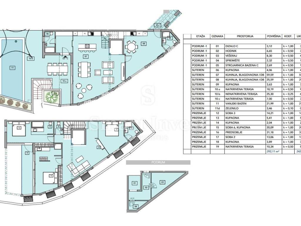OPATIJA, exclusive villa with PRIVATE pool and sea view in the center of Opatija, only 150 meters from the sea! Villa 24C, with a total net area of ​​241 m2, extends over 2 floors of a luxurious new building. The lower floor consists of 2 kitchens with dining rooms and living rooms, 2 bathrooms, 2 covered terraces (18.19 m2 and 7 m2) and an uncovered terrace of 45 m2 with an outdoor pool of 21.99 m2. The upper floor consists of a spacious hall, 3 bedrooms with private bathrooms, an auxiliary toilet and a covered terrace of 10.34 m2. In the basement there is a storage room and a laundry room, as well as 3 garage parking spaces. EQUIPMENT • underfloor heating and fan-coil system on the SAMSUNG heat pump, in all rooms • ALU exterior carpentry SCHUCO • ALICE NUR sanitary ware, GESSI VIA TORTONA/VIA MANZON fittings or similar, according to the customer's choice • floor and wall coverings FLOORGRES - CERIM according to the customer's choice, multilayer parquet MOPAR color according to the customer's choice • anti-burglary entrance door • private pool • 3 garage parking spaces 40 BOX - KUNDIĆ RESIDENCE The exclusive housing project "40 BOX - KUNDIĆ RESIDENCE" is located in the immediate vicinity of the center of Opatija, in a sought-after location with an open view of the Kvarner Bay, and therefore represents a real rarity on the market. The building consists of two underground floors (garage) and four above-ground floors, and has a total of 23 apartments and two business premises with accompanying facilities (indoor pool, sauna, relaxation zone, fitness area) and therefore represents a high standard and equipment. There are garage parking spaces on the underground floors, from which you can take the elevator directly to the floor of each apartment, there are also storage rooms for each apartment unit. LOCATION The complex is located in an extremely attractive location near the center of Opatija, only 150 m away from the sea, the first city beach and the Lungomare promenade, with access from the main Maršala Tito street and a side street. All important housing facilities are 100 to 200 m away. PRICE The stated price refers to a completely finished villa on a turnkey basis, without furniture. 25% VAT is included in the price, the buyer is exempt from real estate sales tax. In the case of a purchase from a company registered in Croatia, a full VAT refund is possible after the sale. OFFER EXCLUSIVELY ONLY WITH US!!! For all information, feel free to contact our agents at +385(99)320-0008 ID CODE: 12998 Agencija Opatija Ovlašteni posrednik Mob: +385/99/320-0008 E-mail: office@smart-invest.hr www.smart-invest.hr