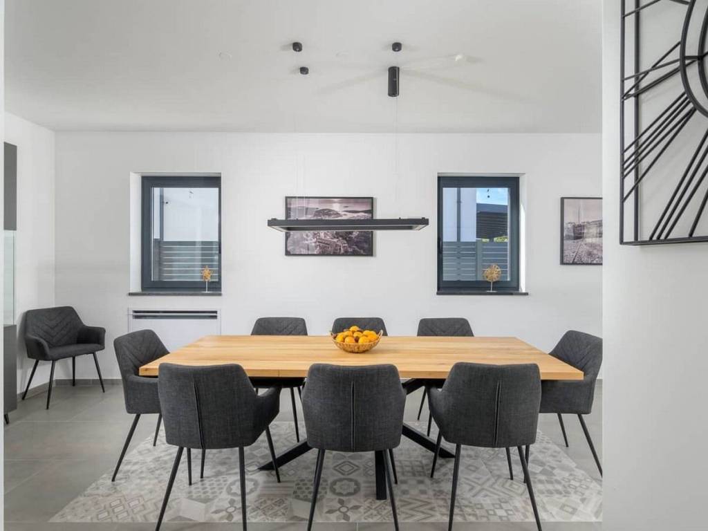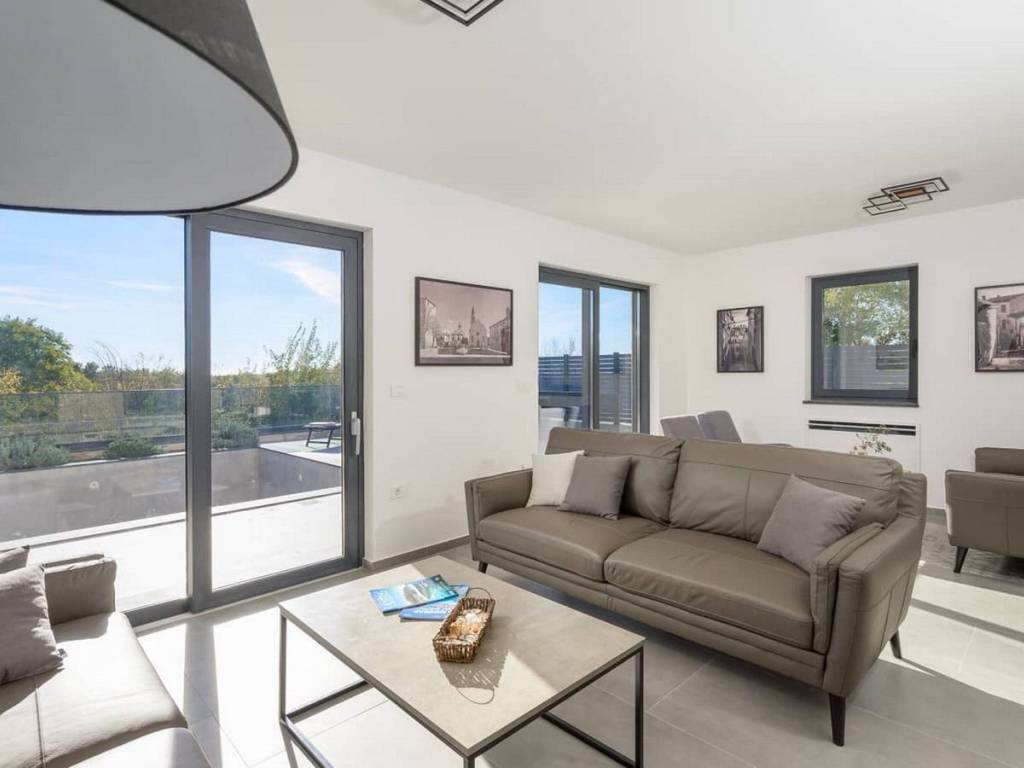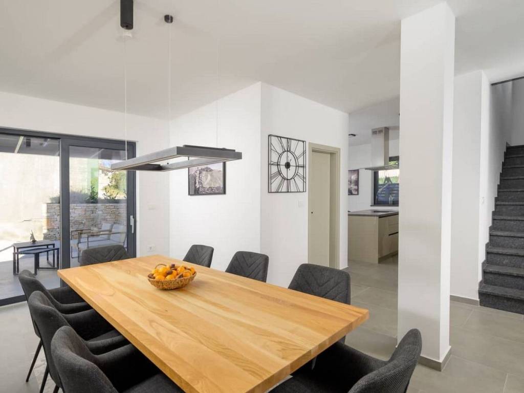 Modern villa with 4 bedrooms and 4 bathrooms. The villa extends through the ground floor and first floor, with a total net usable area of 182.5 m2. It consists of an entrance hall, an open-plan living room, a kitchen and dining room, a toilet, a utility room and a covered terrace with a summer kitchen.On the first floor there is an entrance hall, 4 bedrooms each with a bathroom. The terrace offers a beautiful panoramic view of nature and the sea.The villa is equipped with modern heating and cooling systems (floor heating with fan-coil system and heat pump), and the highest quality materials and equipment are used in the construction.GREAT OPPORTUNITY