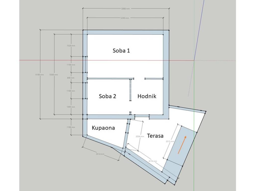 Prizemlje: hodnik, kuhinja, ostava i soba - 25 m2