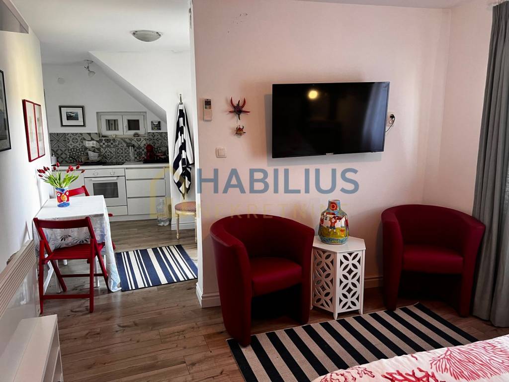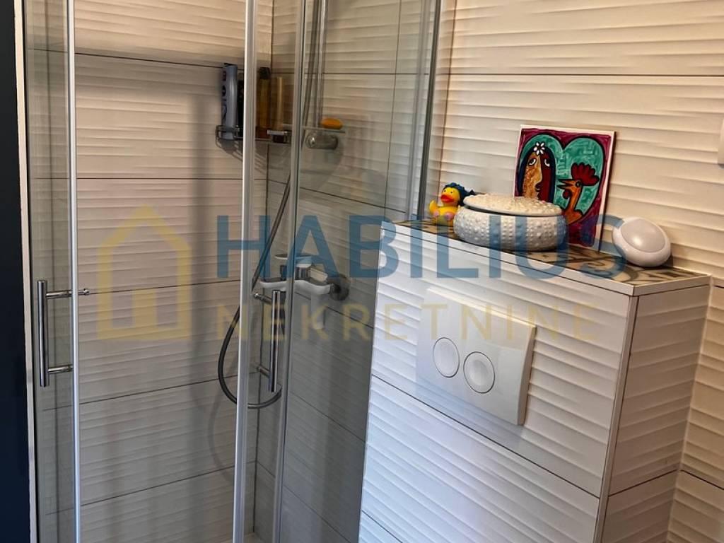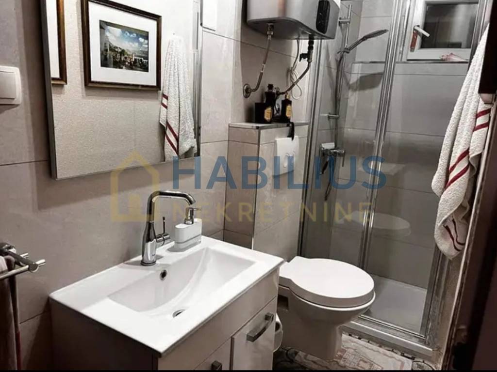 Donja jedinica u prizemlju kuće, je veliki studio apartman sa kuhinjom, spavaćim dijelom, kupatilom sa wc-om, te vanjskom terasom sa roštiljem te natkrvenom sjedećom garniturom.