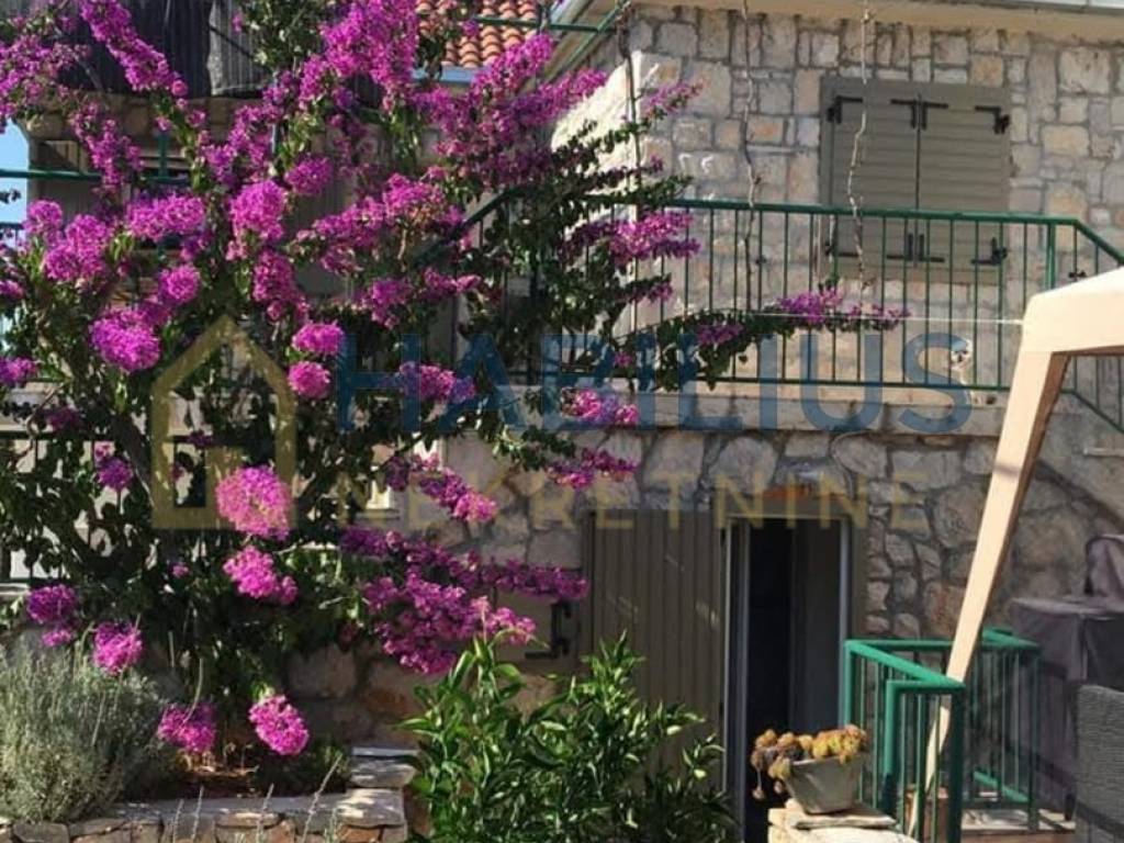 Nudimo, obnovljenu kamenu kuću, sa dvije odvojene jedinice, prizemno i kat, sa kojeg se pruža predivan pogled na samo mjesto i luku. Kuća je kompletno renovirana 2020. g. te moderno namještena za svrhu turizma, ili kao vaša oaza mira na uzvisini.