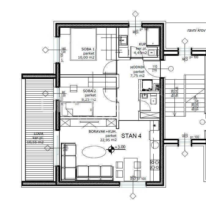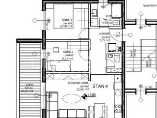 Površina zatvorenog dijela stana: 55,20m²
