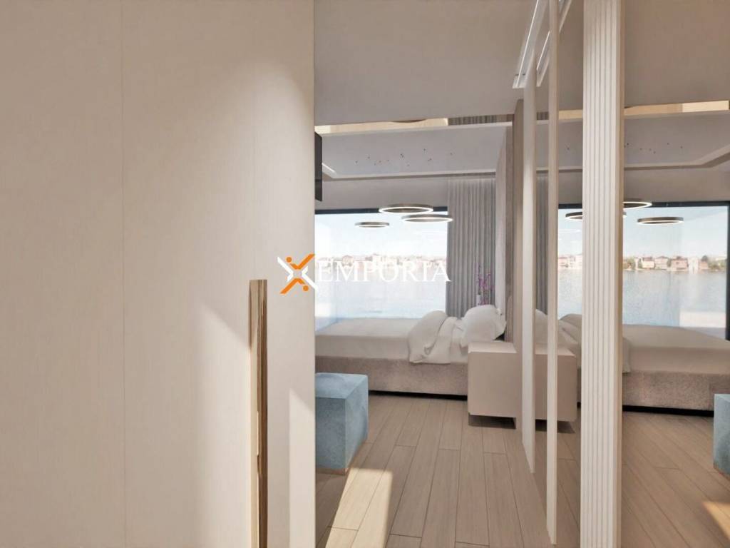 The villa is built with solid concrete walls and a façade insulated with 10 cm of styrofoam, ensuring durability and excellent energy efficiency. Elegant aluminium joinery with triple glazing, insect screens, and curtains further enhances perfect thermal and sound insulation, creating a sense of comfort and luxury. The floors are finished with a combination of tiles and parquet, and security is enhanced by burglar- and fire-resistant entrance doors. The comfort of the living space is ensured by underfloor heating powered by a heat pump, while each room is equipped with its own air conditioner for complete individual temperature control.The entire house features LED lighting, and the security system includes video surveillance and a video intercom accessible via mobile application. The garage is equipped with Hormann doors and a charging station for electric vehicles. The villa is sold fully furnished, including a luxury gaming room, fully equipped gym, sauna, and jacuzzi. The outdoor kitchen on the rooftop terrace includes a large bar counter, barbecue, and fridge, creating the perfect setting for unforgettable gatherings at sunset.The expected energy certificate is A+. This luxury villa in Sukošan represents a unique opportunity for comfortable living or a secure investment in one of the most attractive locations on the Adriatic coast.