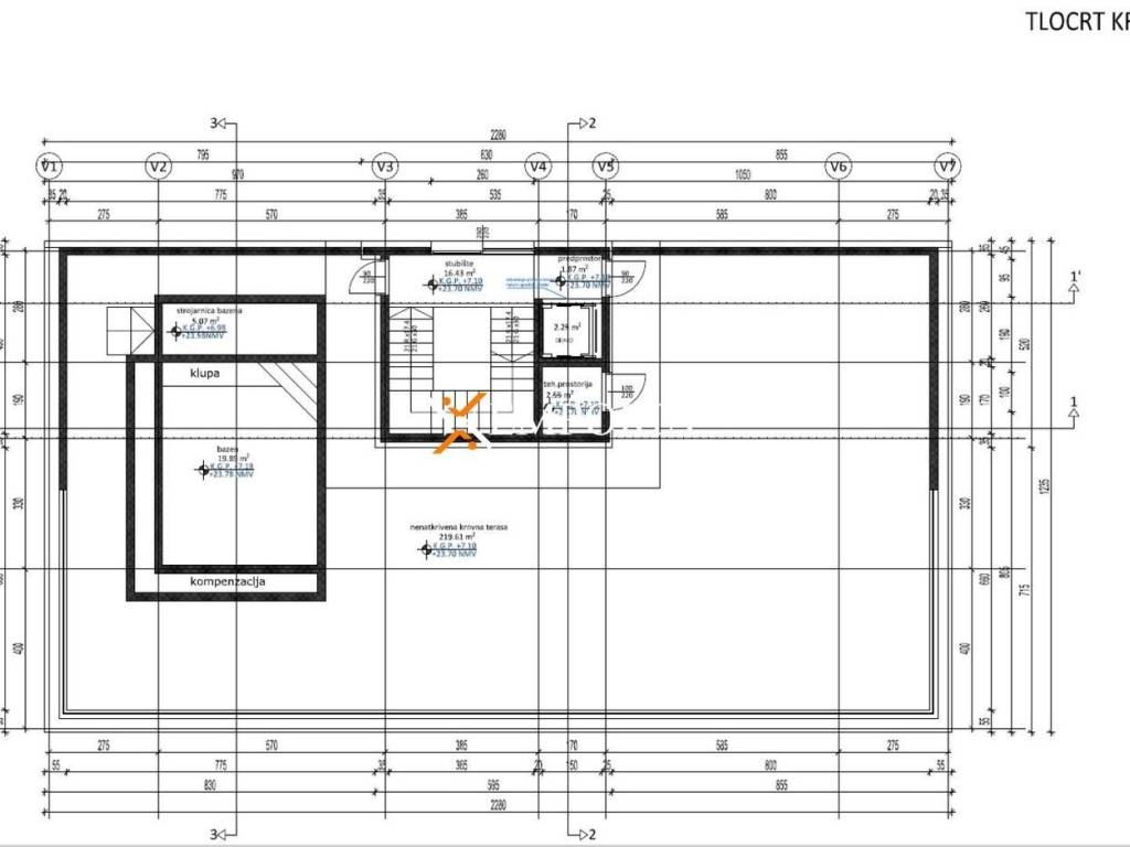 For sale is an exclusive luxury villa in Sukošan, located only 200 m from the sea and 2 km from the town center. Situated on a plot of 1,018 m², this villa combines elegance, comfort, and modern luxury with its impressive design and top-quality equipment.The total gross area amounts to 851.54 m², while its true value is highlighted by two swimming pools: a lower pool of 42.50 m² and a rooftop pool of 19.89 m², offering a stunning sea view.The villa is equipped with an elevator, and the layout of the rooms is as follows:Underground garage (46.87 m²) – space for two cars, plus two additional parking spaces on the outdoor part of the property.Ground floor (256.82 m²) – spacious entrance hall, elegant staircase, modern kitchen with dining area and living room, anteroom, gaming room, wellness with jacuzzi, sauna, gym, shower and WC, and a covered terrace for relaxation.First floor (242.46 m²) – hallway and four comfortable bedrooms, each with its own luxury bathroom and covered terrace.Rooftop terrace (243 m²) – the ultimate space for enjoyment with a pool, outdoor kitchen with a large bar counter, barbecue, fridge, and a generous lounge area for gatherings with family and friends.The total net usable area of the house calculated by coefficients, including pools and garage amounts to 560,40 m2.This exclusive property is inspired in its design by one of the greatest sports legends of all time – Kobe Bryant. The virtues of this outstanding athlete served as inspiration for the villa’s exceptional design, which radiates passion and elegance, strength and excellence, and was created for those who seek true luxury in life. The project was featured in the renowned New York Times, highlighting its architectural uniqueness and the distinctive inspiration behind the concept.