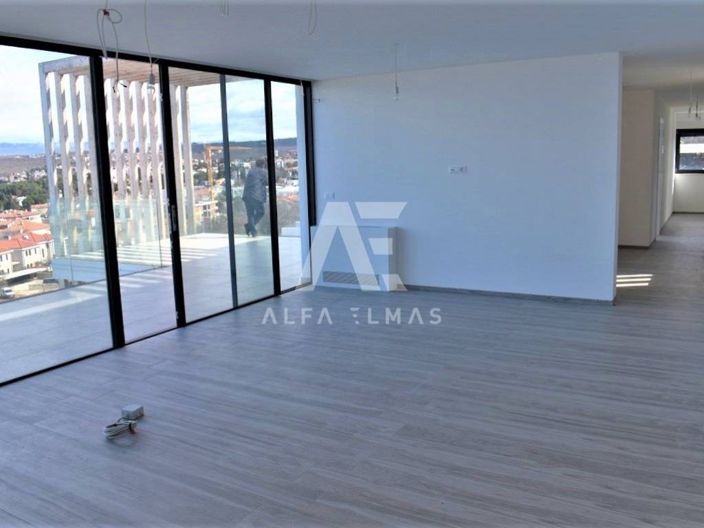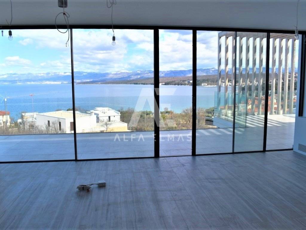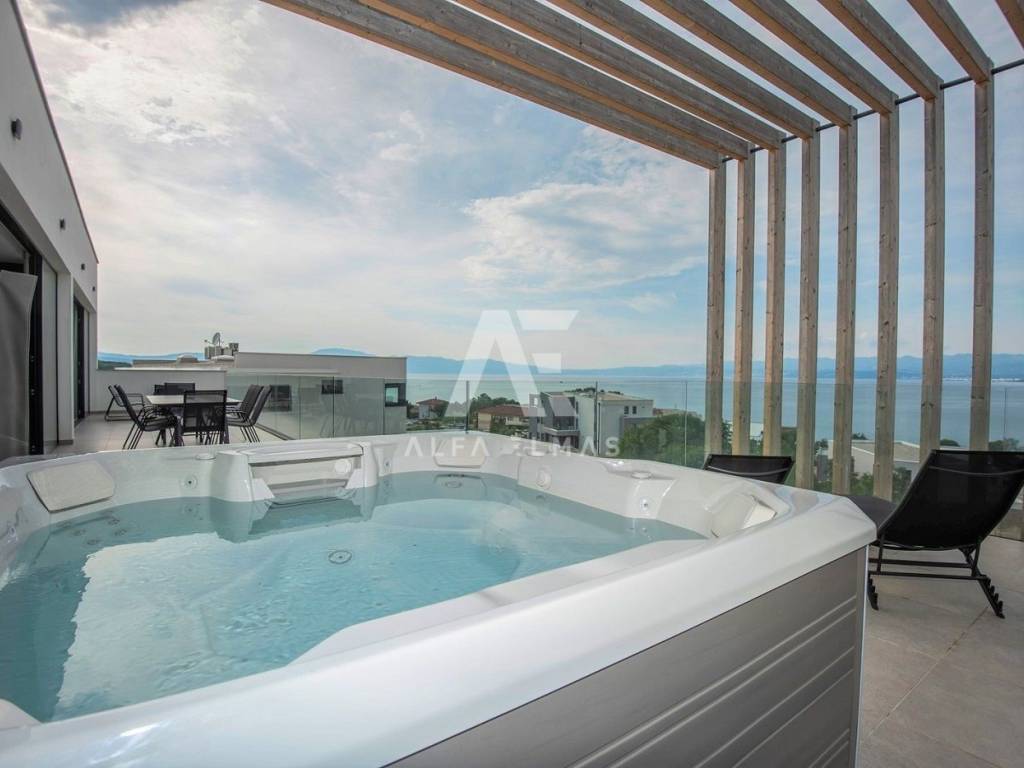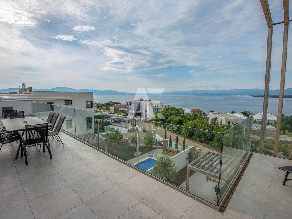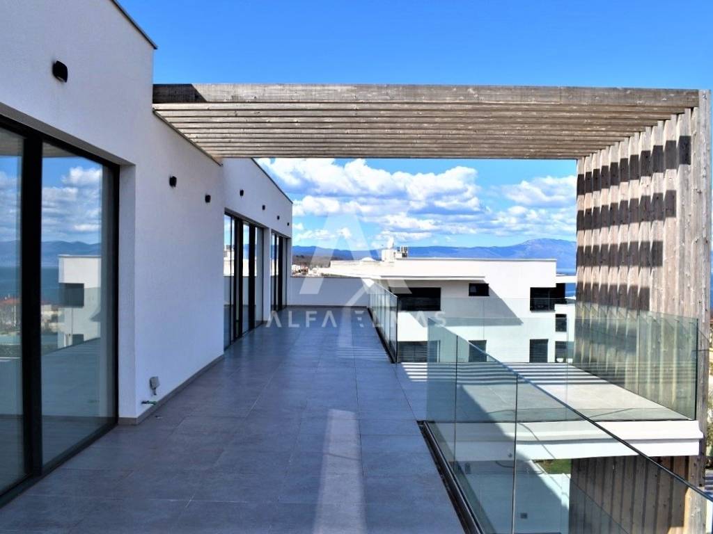 Malinska, luxury Penthouse of 169.30 m2 in an exclusive location! Luxury Penthouse consists of living room, kitchen, dining room, four bedrooms and 4 bathrooms, room with preparation for sauna and shower. Penthouses also emphasize airiness, panoramic openings and a spacious west-oriented terrace with a wonderful panoramic view of the sea and Malinska. The high-quality equipment of the Penthouse includes PVC carpentry, heating and cooling with a heat pump and fan coil system, high-quality ceramics and sanitary equipment in all bathrooms. The luxury Penthouse near Malinska has a storage room in the basement of 5.5 m2 and a covered parking space in the garden. The building with a total of 5 residential units is located only 200m from the sea, the beach and the promenade. Very popular and sought after location!