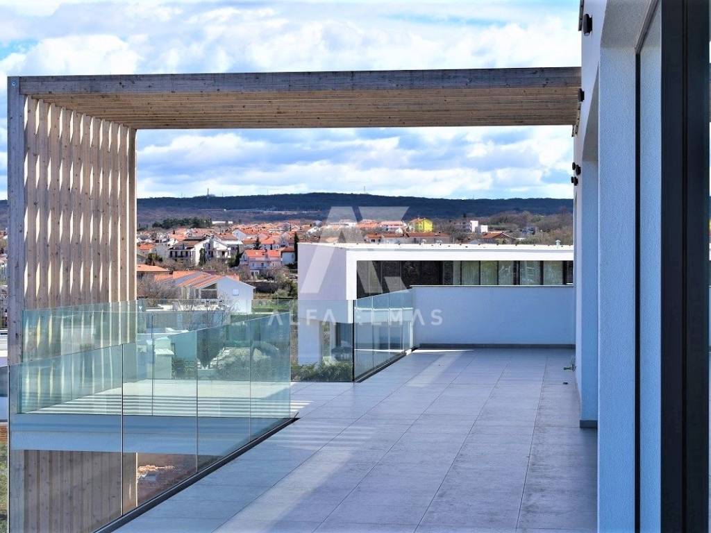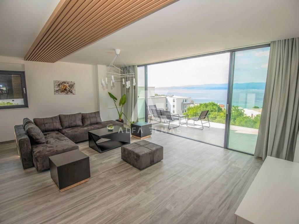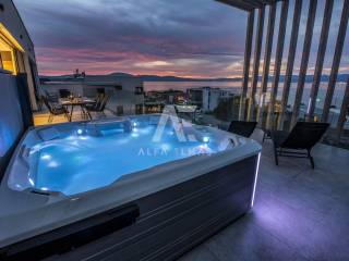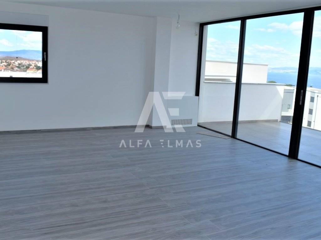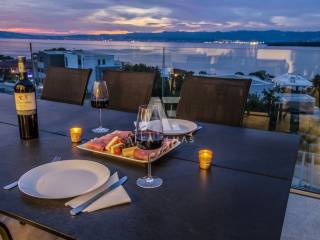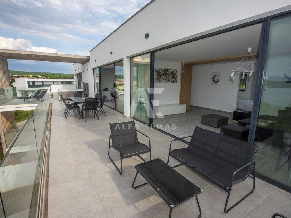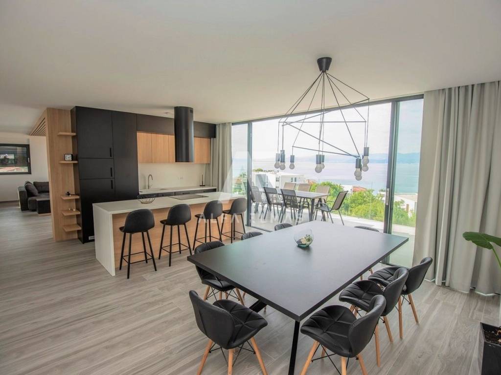 Malinska, luxury Penthouse of 169.30 m2 in an exclusive location! Luxury Penthouse consists of living room, kitchen, dining room, four bedrooms and 4 bathrooms, room with preparation for sauna and shower. Penthouses also emphasize airiness, panoramic openings and a spacious west-oriented terrace with a wonderful panoramic view of the sea and Malinska. The high-quality equipment of the Penthouse includes PVC carpentry, heating and cooling with a heat pump and fan coil system, high-quality ceramics and sanitary equipment in all bathrooms. The luxury Penthouse near Malinska has a storage room in the basement of 5.5 m2 and a covered parking space in the garden. The building with a total of 5 residential units is located only 200m from the sea, the beach and the promenade. Very popular and sought after location!