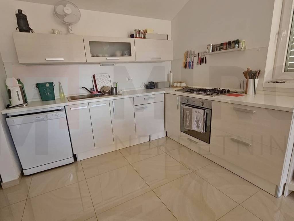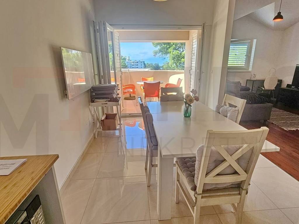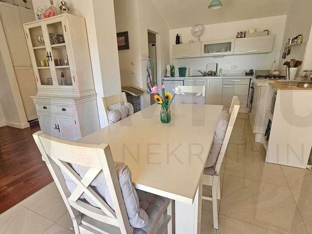 The island of Krk, Malinska offers a fully furnished apartment on the second floor of a newer residential building near the sea and the center of Malinska. This spacious apartment consists of an entrance hall, three bedrooms, one of which has access to its own covered balcony, bathroom, guest toilet, living room, kitchen with pantry and dining room with access to a covered balcony with a partial sea view. Quality construction and equipment, multi-split air conditioning, PVC exterior carpentry, underfloor heating and security doors. It has a storage room in the basement and one parking space in the shared courtyard of the house. It is fully furnished and equipped, ready to move in immediately. It is located in a quiet location only 200 m away. The documentation is in order, the ownership is clear, and the buyer bears the real estate transfer tax of 3%. Visit us and find the square footage of your home!