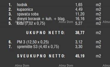 We are selling an apartment in a new residential complex in Štinjana. The complex consists of 19 two-story residential buildings. The location of the new residential complex is excellent, just one kilometer away from the center of Štinjana and in close proximity to an elementary school, kindergarten, the city beach Hidrobaza, a pharmacy, and only four kilometers from the center of the city of Pula and three kilometers from the center of the village of Fažana. Access to the residential complex is provided from an asphalted surface, which will include all necessary infrastructure (electricity, water, sewage).The apartment marked 8C is located on the first floor of the building and consists of a hallway, a living room with a kitchen and dining area, a bedroom, a bathroom, and a terrace.What makes this project special is the architectural design of the facades of the residential buildings and the green roofs that appear on the facade.Each residential unit is allocated the necessary number of parking spaces according to the urban plan of the city of Pula, measuring 2.50m x 5.00m. Each parking space is designed with a future connection to the electrical grid for the purpose of connecting chargers for electric vehicles.This apartment comes with a storage room and 1 parking space included in the price.We are accepting reservations!For more information, please contact:Azra +385 91 611 5706 +385 98 420 885 azra@almadominvest.com