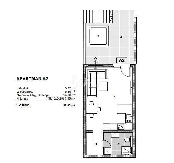 Kaiser Immobilien is proud to offer a modern luxury apartment complex located in the quiet area of Arbanija on Ciovo, just 4 kilometers from the historic town of Trogir. Trogir and Ciovo are the perfect combination of history and nature. Trogir, a beautiful town under UNESCO protection, offers a rich cultural heritage and charming stone streets. Ciovo, connected by a bridge, is known for its clean beaches and crystal clear sea - ideal for a relaxing holiday. Apartments in this area guarantee an authentic Mediterranean experience close to all amenities as well as the proximity of Split Airport, only 5 km away. 1-bedroom, 2-bedroom and 3-bedroom apartments with gardens, balconies and roof terraces are available in all buildings of this prestigious project. Each apartment offers panoramic sea views, is modernly designed with an emphasis on functionality and aesthetics, and is equipped with top-quality materials: aluminum joinery, sliding glass walls, sunshades, underfloor heating and quality insulation that enables energy class A+. The buildings are built to the highest standards using advanced modular Plastbau technology, which additionally guarantees superior resistance, safety and energy efficiency. The settlement is designed as a combination of luxury and homely warmth, with a "turnkey" option, where the buyer can choose a fully furnished and equipped apartment. Parking is provided - underground or outdoor parking space depending on the unit. The project is located in a peaceful Mediterranean environment, while at the same time offering excellent connections to Split, the airport and other important facilities. It is ideal for private buyers, but also as an investment - with the possibility of joining a professionally managed tourist rental system with a complete reservation, reception and maintenance service, without any involvement of the owner with a guaranteed return on investment of 4%. We also highlight a charming studio apartment from the offer, ideal for both private use and tourist rental. A spacious living room with kitchen and dining room (24.30 m²) provides a comfortable and functional living space, while a practical hallway (3.32 m²) and a modern bathroom (5.20 m²) complete the whole. The real special feature of the apartment is the large terrace of 19.4 m², the perfect place for relaxing outdoors with a beautiful view of the sea, enjoying your morning coffee or evening gatherings after returning from the beach with crystal clear sea, which is located 50 meters away from the apartment. It is this kind of outdoor space that makes the apartment attractive to guests and increases its potential for tourist rental. Regardless of whether you are looking for a cozy corner for yourself or an investment with an excellent return through rental, this apartment offers everything you need. The total area of the apartment is 37.62 m², and thanks to its modern design and high-quality workmanship, it provides exceptional comfort for living throughout the year or for use for tourist purposes. The agency commission for the buyer is 3% + VAT and is paid in the case of purchasing a property, upon conclusion of the first legal act. Contact us with confidence for more information and to arrange a viewing. Tel: +385915404646 Email: vedran@kaiser-immobilien.hr