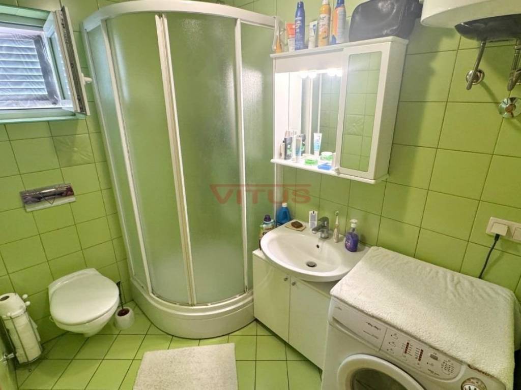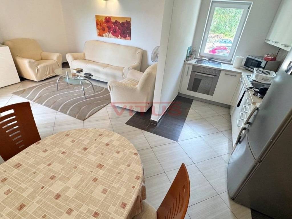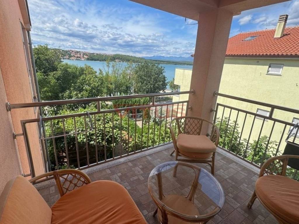 Island of Krk, Soline! Excellent location, first row to the sea! Two-bedroom apartment of 59 m2 is located on the second floor of a residential building in Soline. It consists of a hallway, living room with kitchen and dining room, two bedrooms, storage room and bathroom. The living room opens onto a comfortable terrace with a beautiful sea view. The apartment is air-conditioned, and fully furnished and equipped. It comes with one parking space in the building"s yard and additional storage space in the attic. Unique location near the beach!