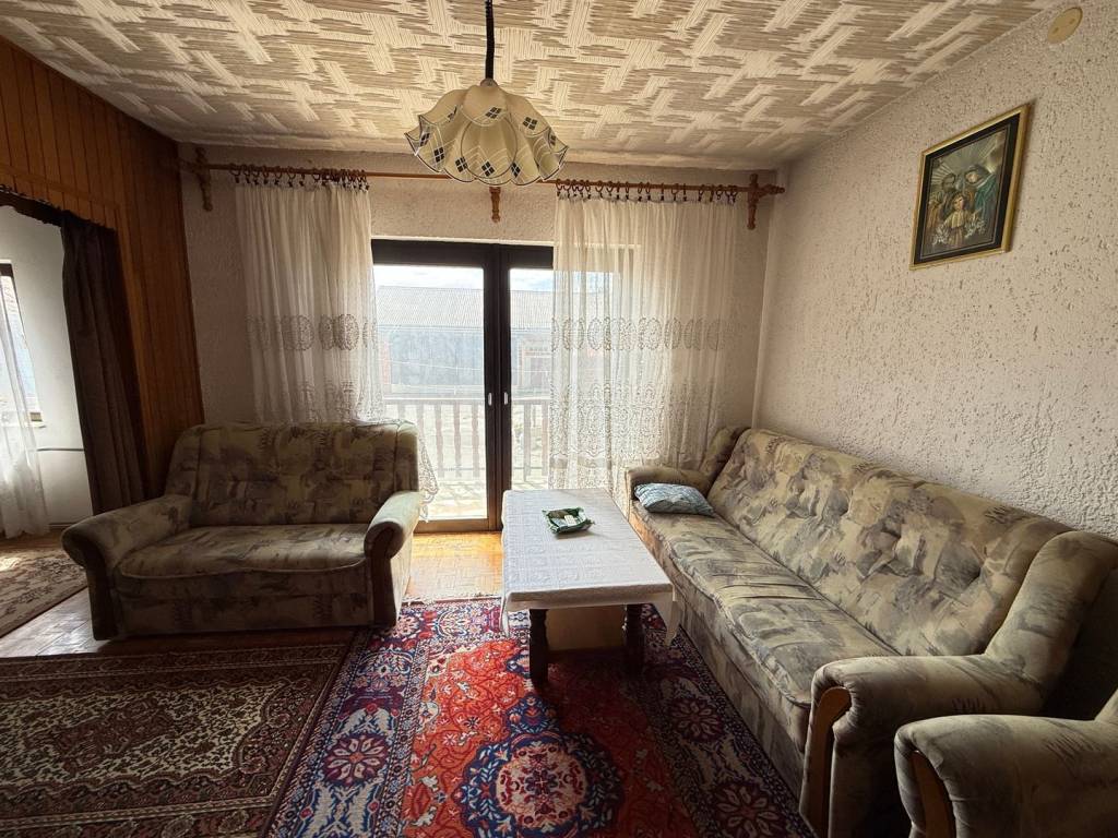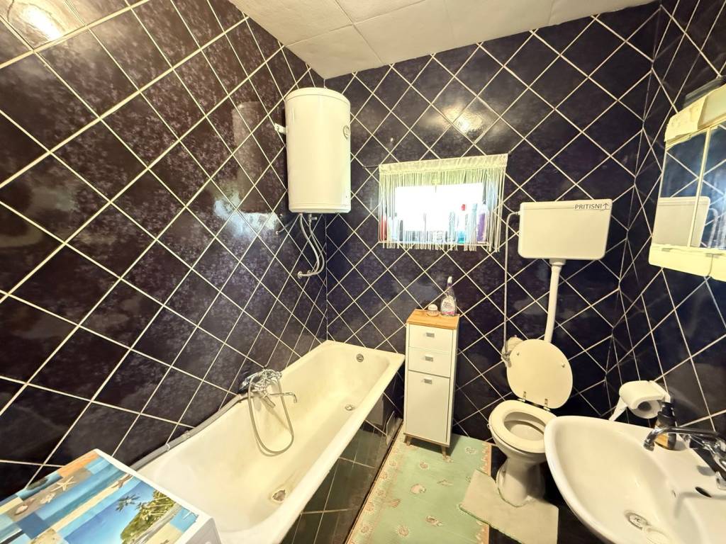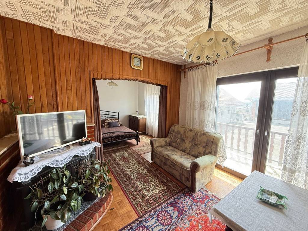 La casa principal, con una superficie de planta de 122 m2, consta de sótano, planta baja y desván sin acondicionar. En el sótano hay un taller, una sala de calderas con calefacción central de leña, leñera, hidroneumático y espacios adicionales para almacenamiento. La planta baja de la casa incluye dos dormitorios, sala de estar con salida al balcón, cocina con comedor, baño y escalera que conduce al desván. El desván está sin acondicionar y ofrece potencial para espacio habitable adicional o para ser acondicionado según las propias preferencias. La casa cuenta con conexión eléctrica y de agua.