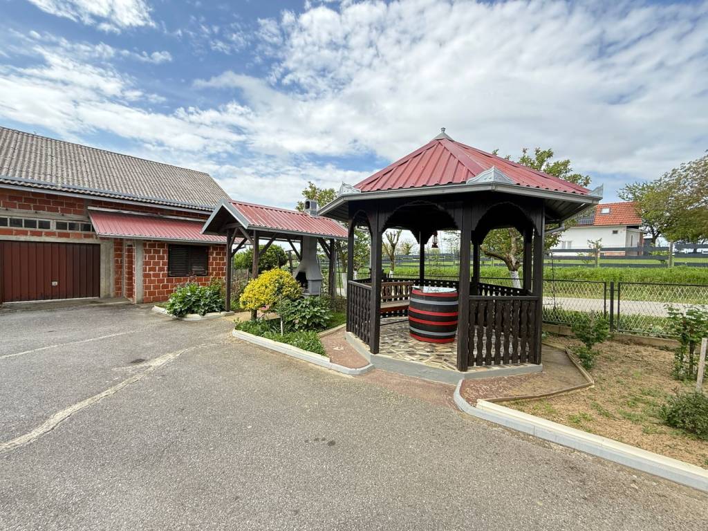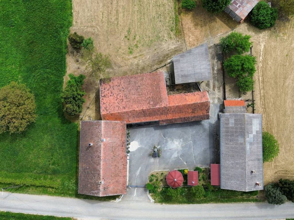 En la parcela también hay un edificio con tres garajes, de los cuales dos son aptos para vehículos altos y uno para vehículos bajos. La superficie total de planta del edificio es de 145 m2 y es adecuado para realizar diversas actividades artesanales o de servicio. Además, en la propiedad hay establos y cobertizos con una superficie total de planta de 200 m2, dos almacenes para maquinaria agrícola, una leñera adicional y otras dependencias auxiliares.