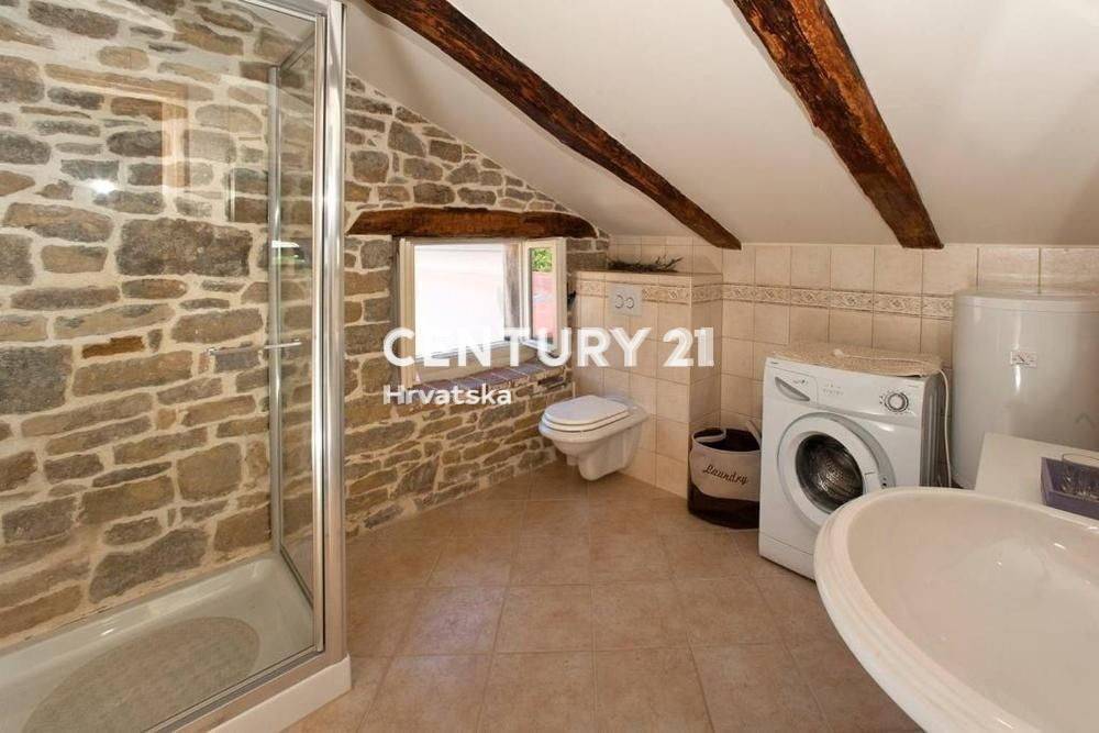 Materiales como la antigua piedra istriana, vigas de madera del bosque de Motovun y grandes armarios de madera son características especiales de esta casa que definitivamente vale la pena visitar para experimentarla en todo su esplendor.