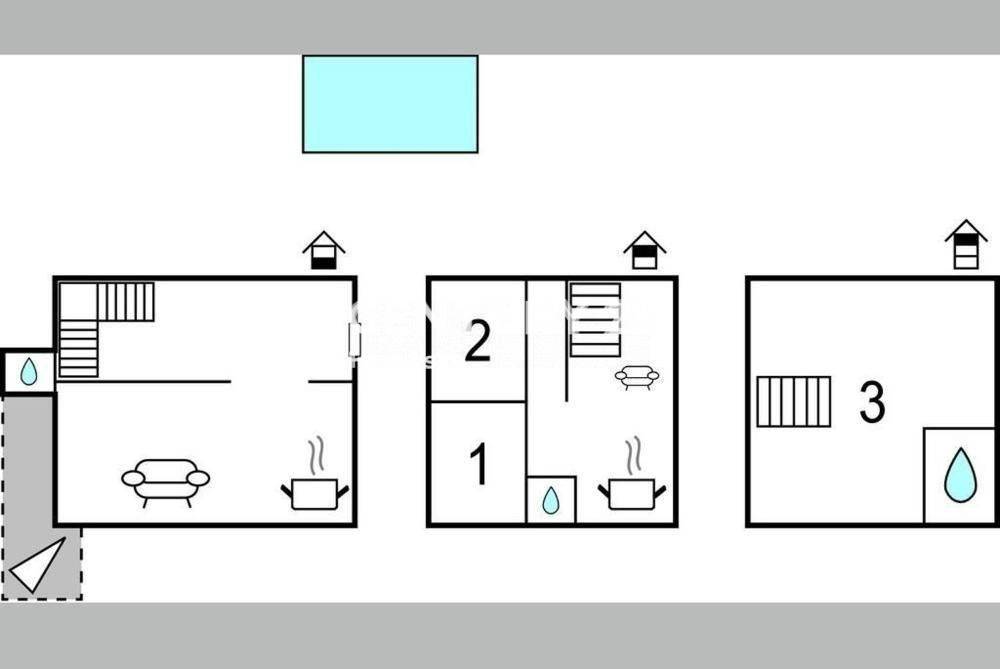 En la planta baja de la casa hay una cocina con un gran comedor y sala de estar, además de un aseo. En el primer piso hay otra cocina con sala de estar, dos dormitorios y un baño. El ático alto está diseñado como un espacio tipo estudio para descanso (sala de estar, dormitorio y baño).