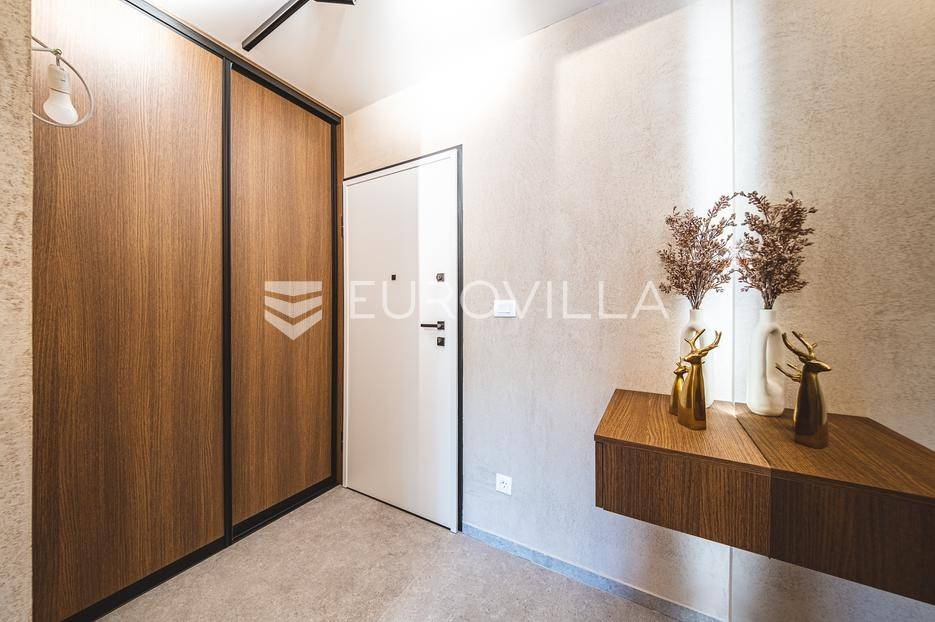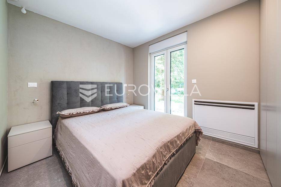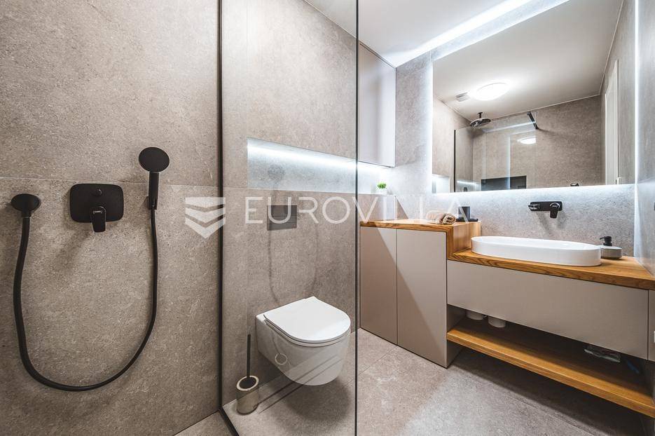 Britanski trg, dvosoban stan NKP 69 m², u novogradnje iz 2023. godine, smješten u mirnoj ulici, svega 5 minuta hoda od Britanskog trga.Sastoji se od ulaznog hodnik, kupaonice, dnevnog boravak s kuhinjom i blagovaonicom otvorenog koncepta s izlazom na natkrivenu terasu površine 10 m², (5 m²), spavaće sobe s izlazom na nenatkrivenu terasu površine 6 m² (1,50 m²). Pripada mu i vrt površine 48 m² (4,8 m²), parkirno garažno mjesto 15 m² (7,5 m²) i vanjsko parkirno mjesto 12,50 m² (3,1 m²). Zatvorena površina stana je 47 m².Opremljen Daikin dizalicom topline, podnim grijanjem, ALU-drvo stolarijom, komarnicima, električnim roletama. Energetski razred A+. Prodaje se namješten i potpuno nov.Izvrsna lokacija. U mirnoj i neprometnoj ulici, okruženo zelenilom, a nekoliko minuta šetnje od parka, dućana, ljekarne, tržnice te svih bitnih sadržaja za život.Ostale informacije na upit.