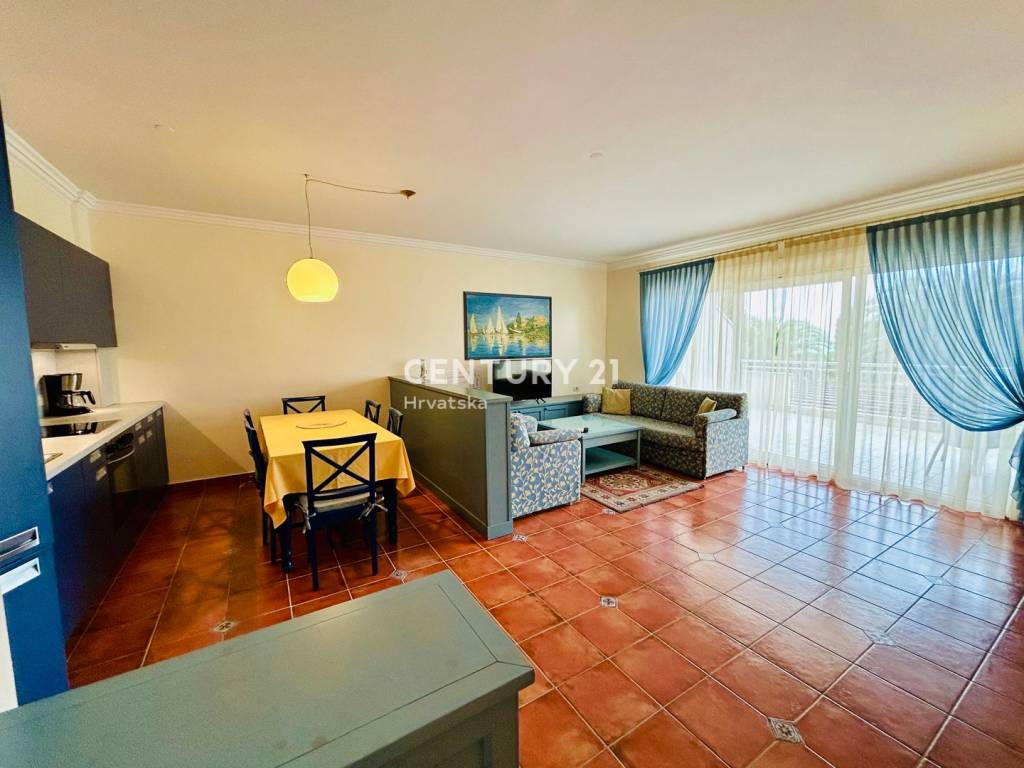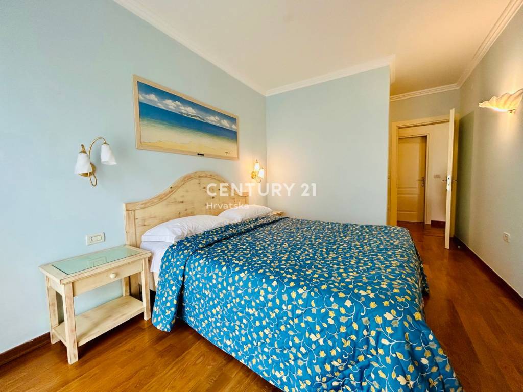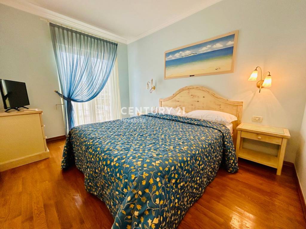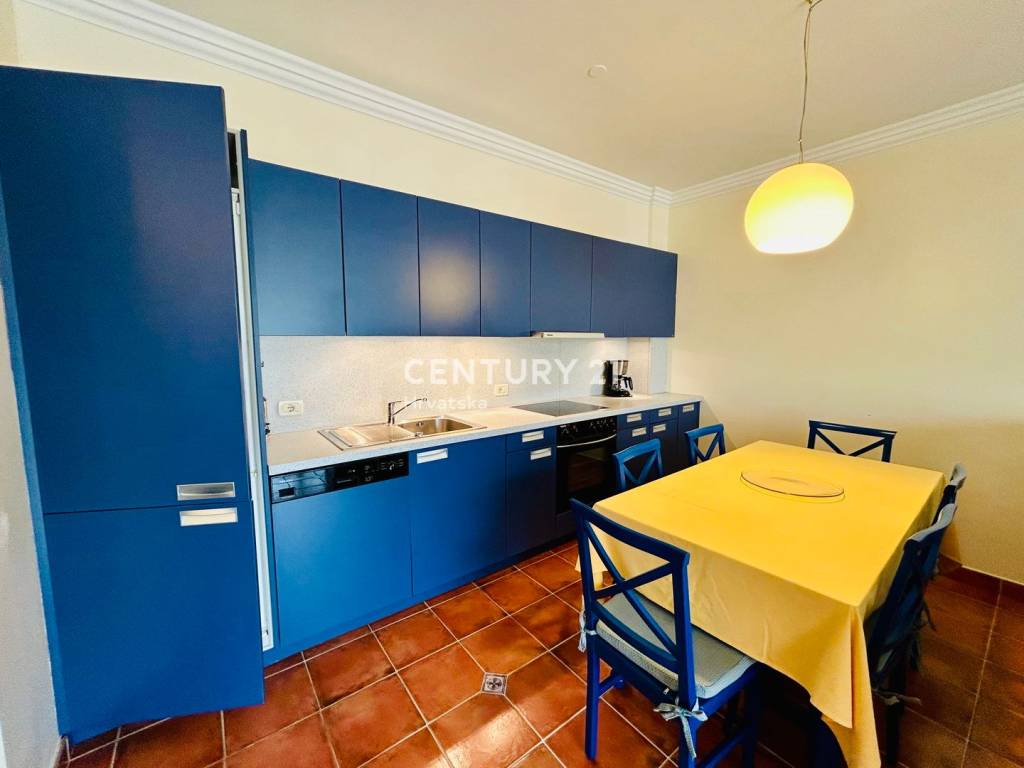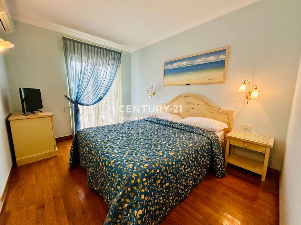 El apartamento consta de un vestíbulo de entrada, cocina con sala de estar y comedor de concepto abierto, un dormitorio, baño, aseo y una amplia terraza cubierta con vista abierta al mar. El apartamento está completamente equipado, amueblado y en uso, y se vende tal como está. El apartamento cuenta con una plaza de aparcamiento, trastero y el edificio está equipado con ascensor. Una característica especial de este apartamento es el amplio y soleado balcón con una superficie de 21 m2, que ofrece un lugar perfecto para relajarse con vistas al mar.