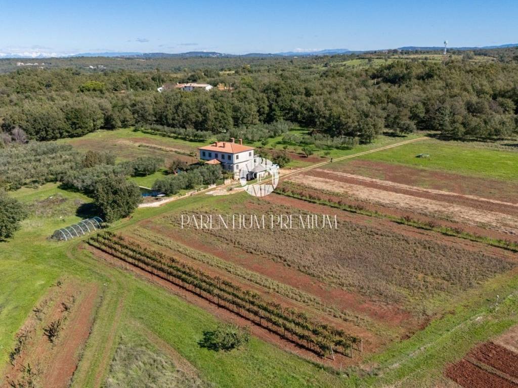 Istria, Umag Area – Spacious Property with Estate of 37,500 m²For sale: a truly unique property offering complete privacy, peace, and comfort – a 360 m² house situated on a vast 37,500 m² estate near Umag.The house is spread over three levels – basement, ground floor, and first floor.Ground floor: hallway, modern Italian-design kitchen with island and a large dining room perfect for family gatherings, and a spacious living room currently used as a bedroom. The rooms are bright and airy, with large glass surfaces overlooking olive groves and vineyards. There is also a guest bathroom with high-quality Italian ceramics.First floor: three bedrooms, one bathroom, and a newly renovated studio apartment with a private entrance and internal connection to the main house.Basement: multiple rooms suitable for conversion into a wine cellar, wellness, gym, playroom, office, or extra living units.A large double garage is also included.The estate consists of several interconnected plots with two access roads from asphalt streets. It features olive trees, vineyards, cherries, figs, and various fruit trees. There is also the option to build an additional guest house or auxiliary building.✅ Clean title, 1/1✅ Legalized house and auxiliary building✅ City electricity (three-phase), water, telephone✅ Air conditioning and wood stove✅ Sold furnished (excluding personal belongings)A genuine private oasis in the Istrian countryside – ideal for a peaceful family residence, vacation retreat, or investment with vast potential.