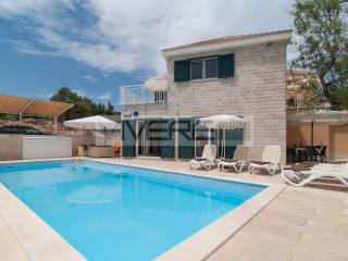 The villa is 4 km from the sea and beautiful pebble beaches away. Because of its hillside position the property offers an unforgettable view over the sea and on the mainland. The object is built in traditional Dalmatian architectural style, and the basic material used in external decoration is the famous Brač stone, while the horticulture is decorated with traditional plants and lawn. The outdoor area encompasses also an outdoor fireplace and a really large pool with a size of 40 sqm. You can choose between refreshing yourself in the fresh water pool or enjoying in the crystal clear sea. In front of the villa are two covered parking places.
