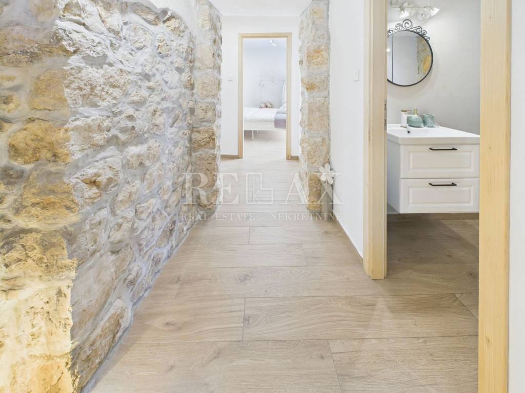In a peaceful location in Bribir, just 500 meters from the town center and 5 kilometers from the sea, lies an authentic stone villa that combines the charm of Mediterranean tradition with the comfort of modern living. This fully renovated villa from 2024 offers 110 m² of living space spread over two floors, with a carefully landscaped plot totaling 695 m², including a spacious 200 m² paved terrace ideal for outdoor living.