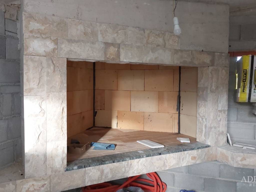 PRIZEMLJE: Veliki i prostran dnevni boravak s kuhinjom i blagovaonicom, kupaonica, stubište za kat, natkrivena terasa.