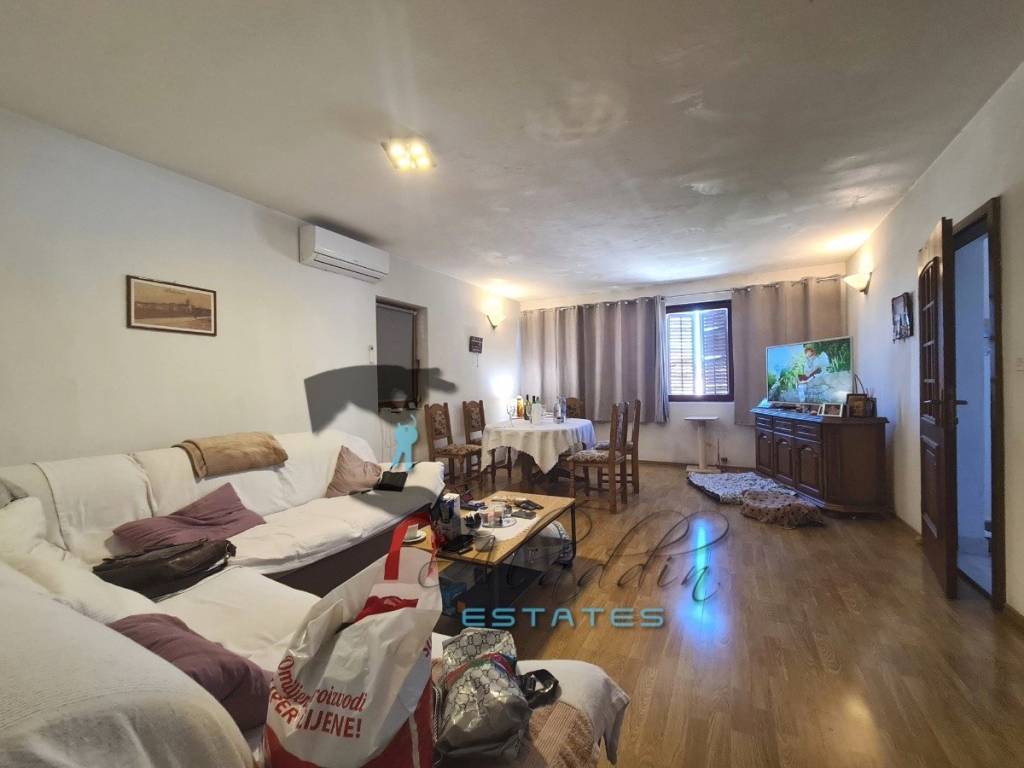Pakoštane, espaciosa casa independiente residencial-comercial con una superficie bruta habitable de 620 m2, distribuida en cuatro plantas, sobre una parcela de terreno de 310 m2. En el sótano se encuentra un garaje con capacidad para 6-7 vehículos y dos trasteros/almacenes de 27 m2. También hay 7 baños que dan servicio a los locales comerciales circundantes.