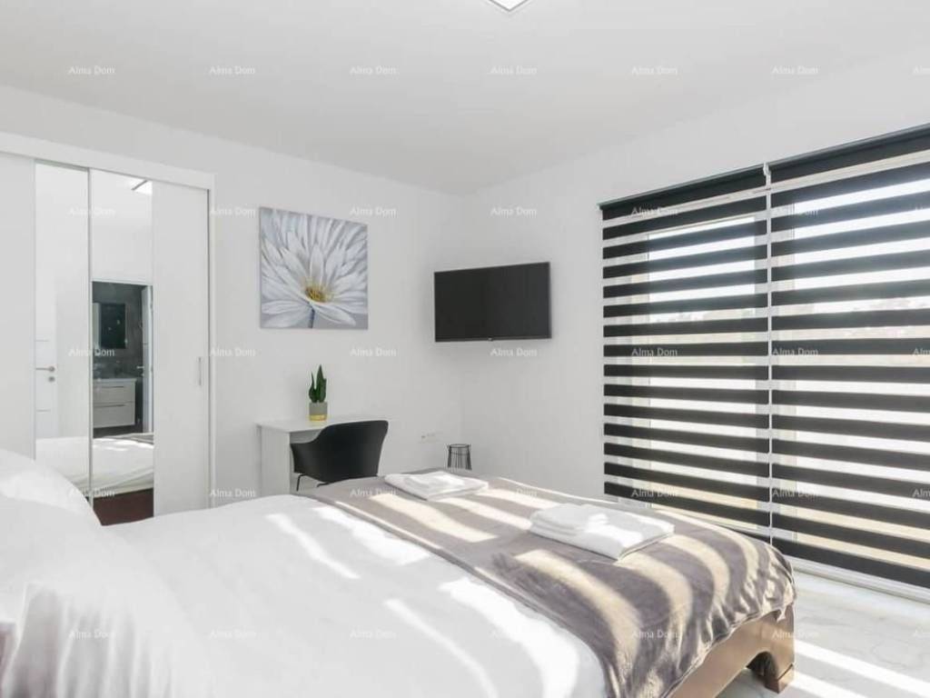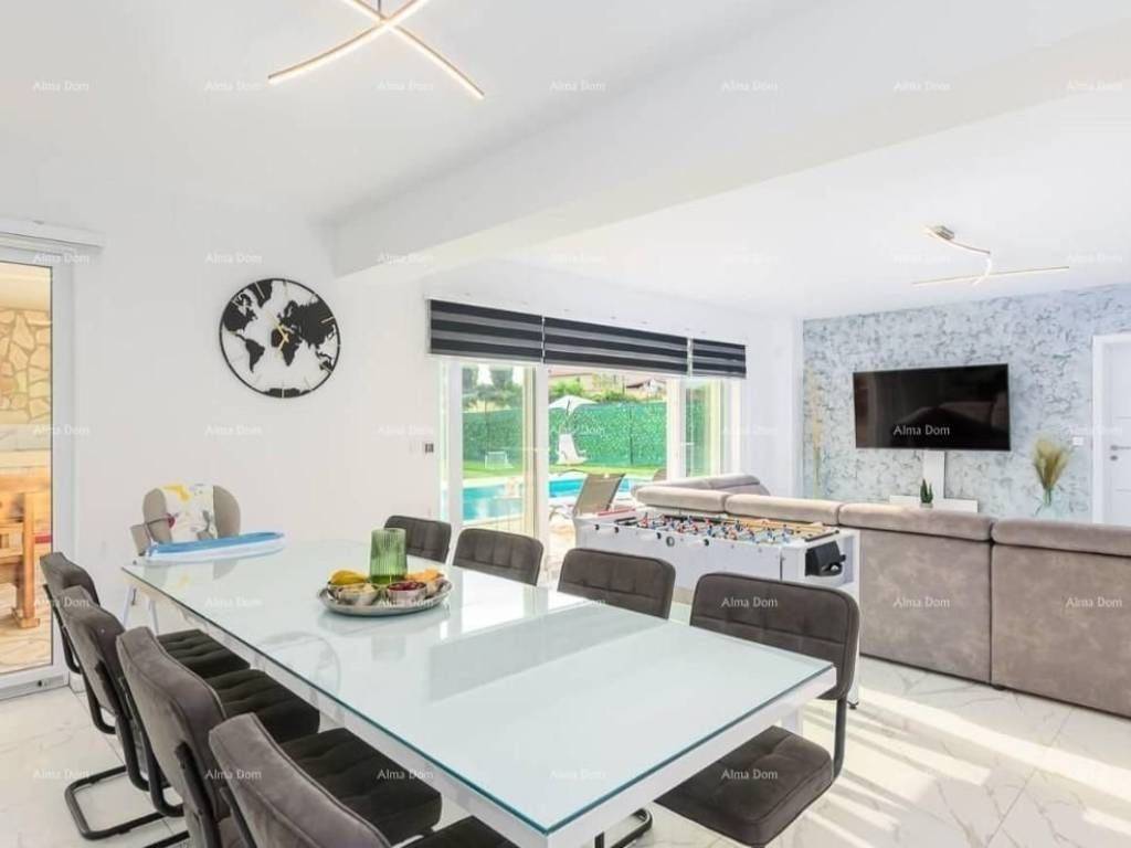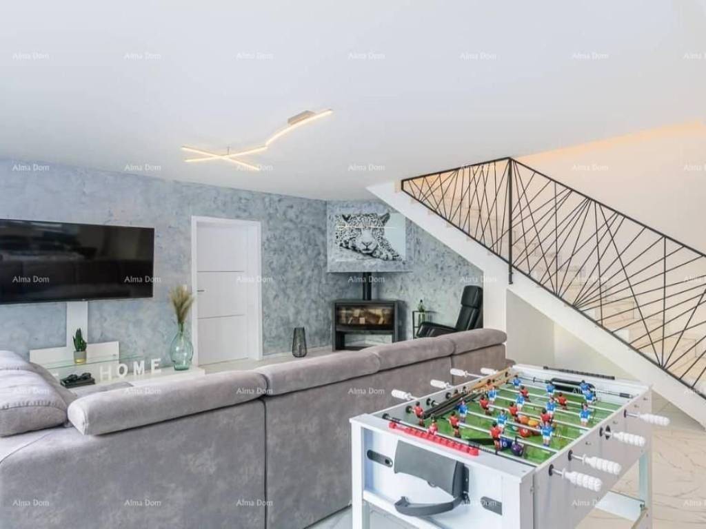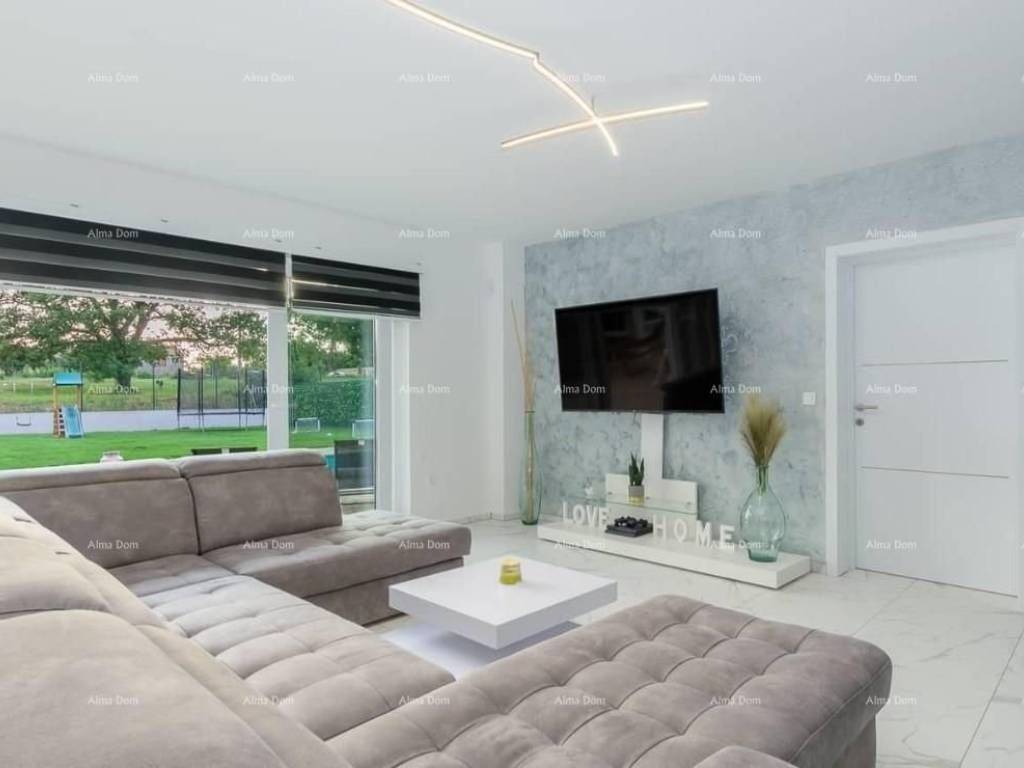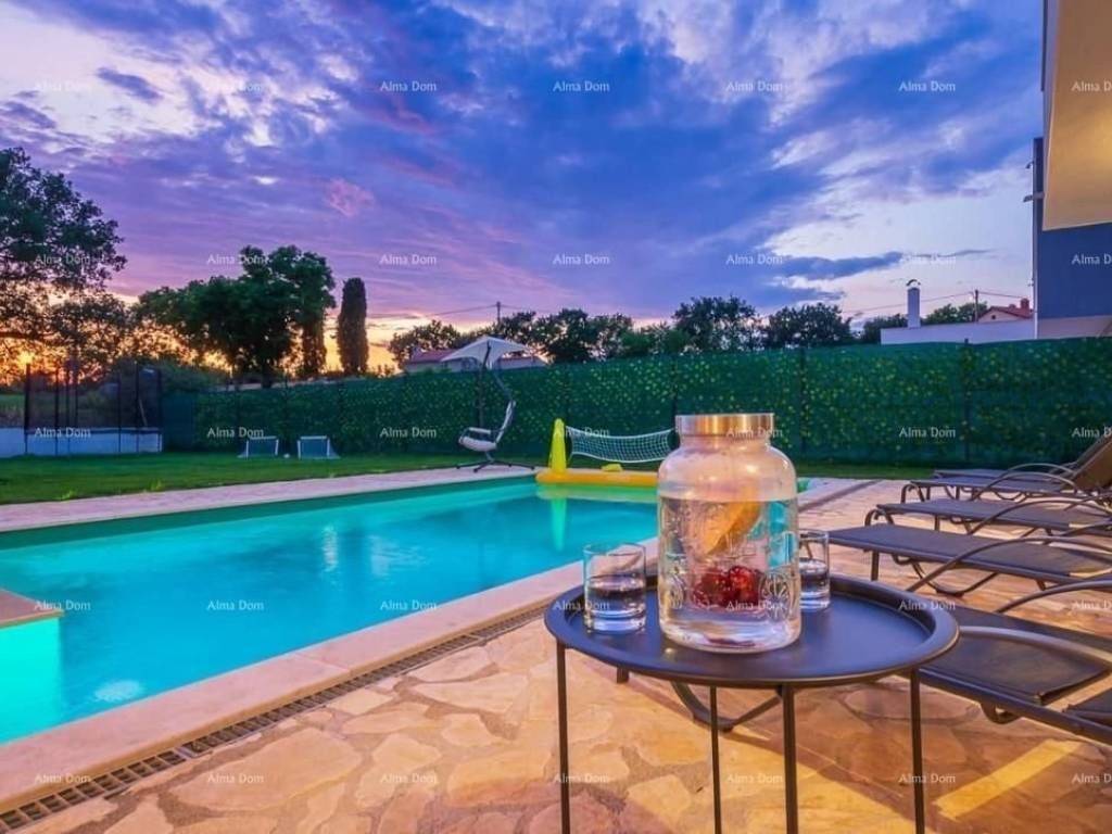A beautiful and modern villa is for sale located in a small Istrian village. The villa has a large and fenced garden with a private swimming pool (40 m2) and a beautiful terrace with a barbecue.The ground floor consists of 1 bedroom, a large living room with access to the pool and terrace and a fully equipped kitchen. The first floor consists of 3 bedrooms, one of which has its own balcony. The villa is fully air-conditioned, has wifi internet access and private parking.The location is ideal for exploring the whole of Istria. The coast and beaches as well as almost all Istrian towns are within a radius of about 15 kilometers.Shops, bars and restaurants are just a few minutes drive away.For additional information and viewing, please contact:Azra+385 91 611 5706+385 98 420 885azra@almadominvest.com