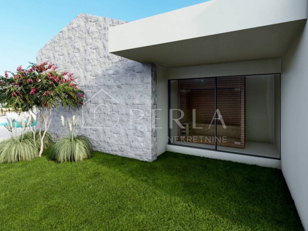 Iz dnevnog dijela stana se pristupa vanjskom dijelu gdje se nalazi bazen sa sunčalištem ispred kojeg je predviđena natkrivena vanjska kuhinja,