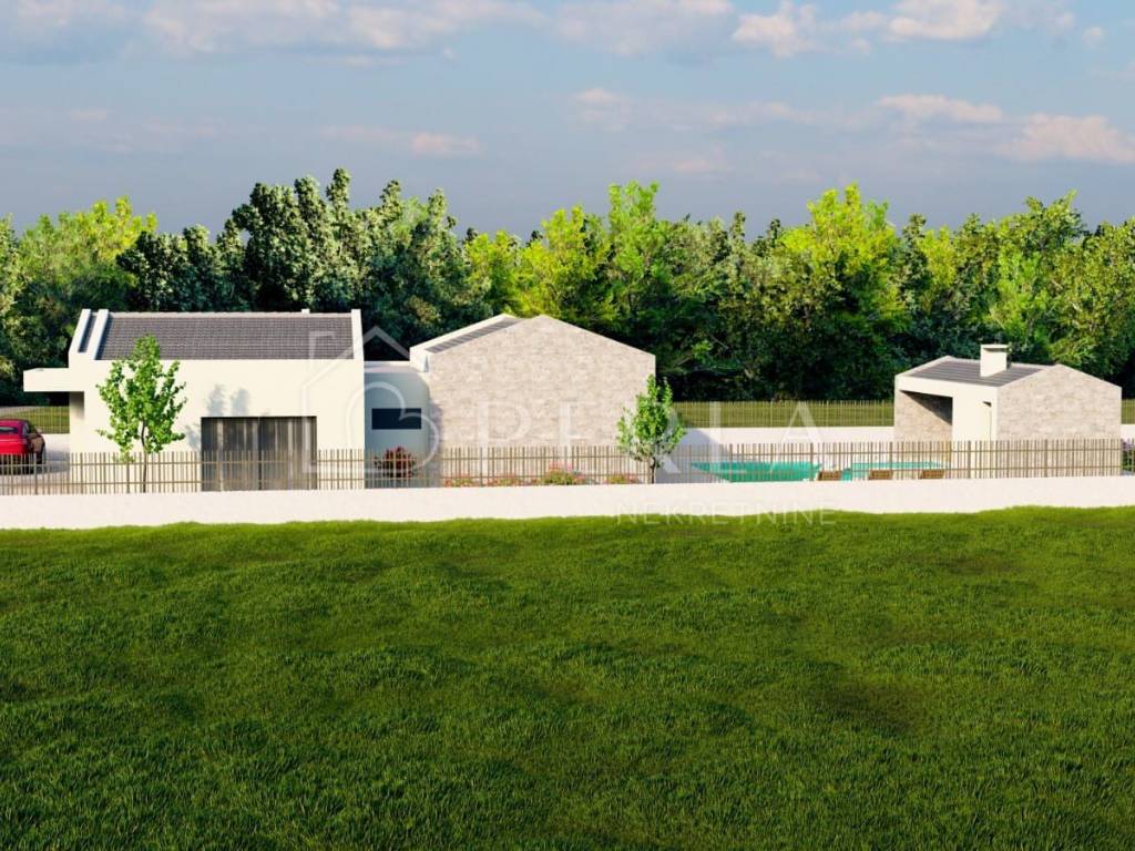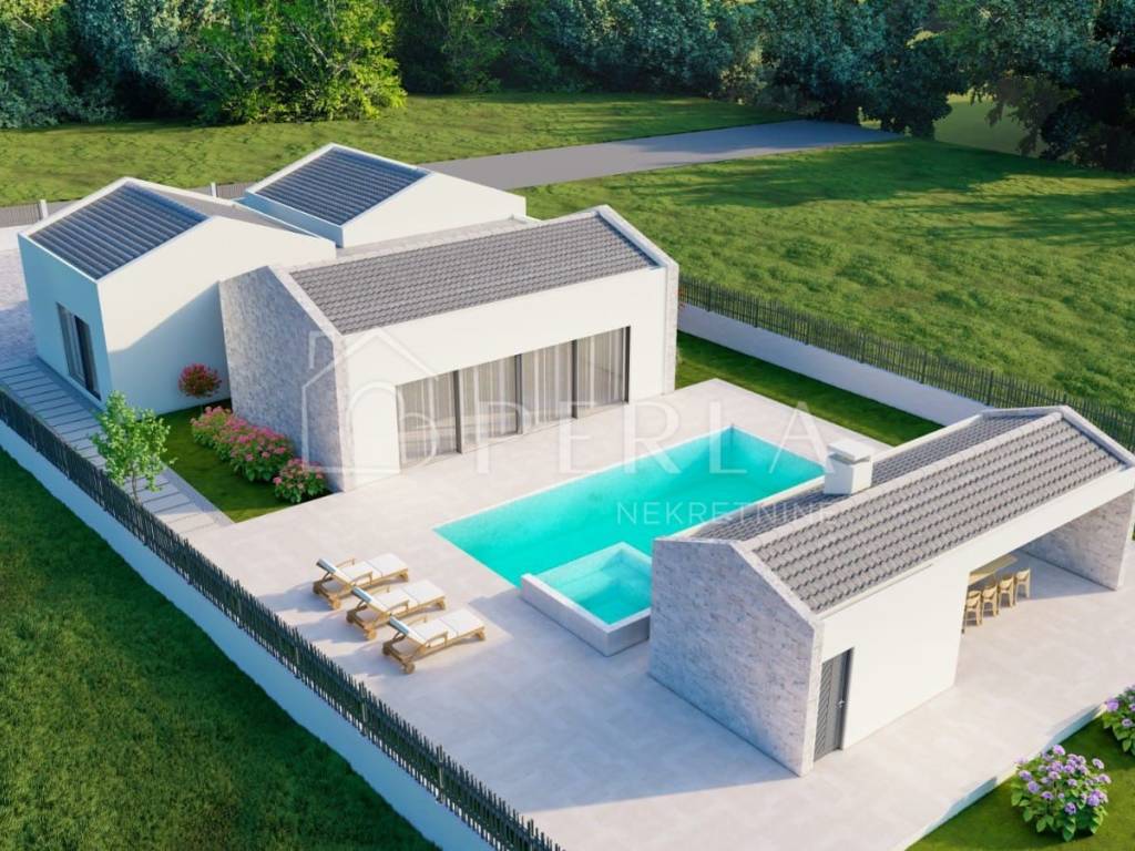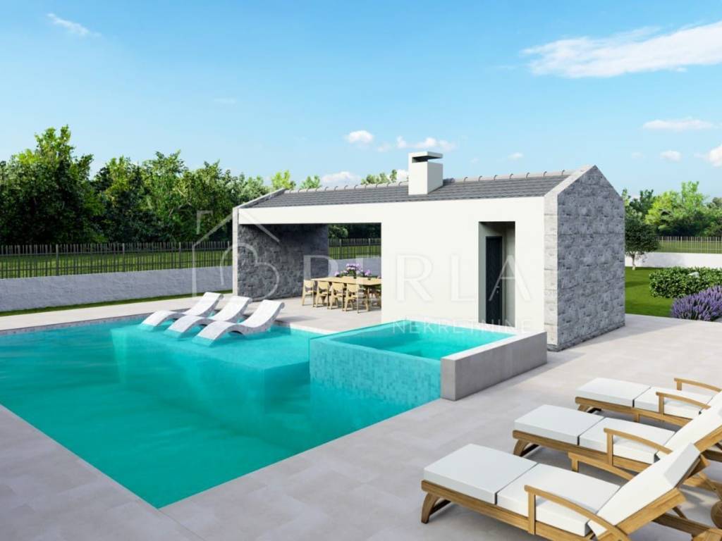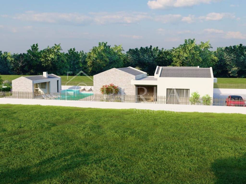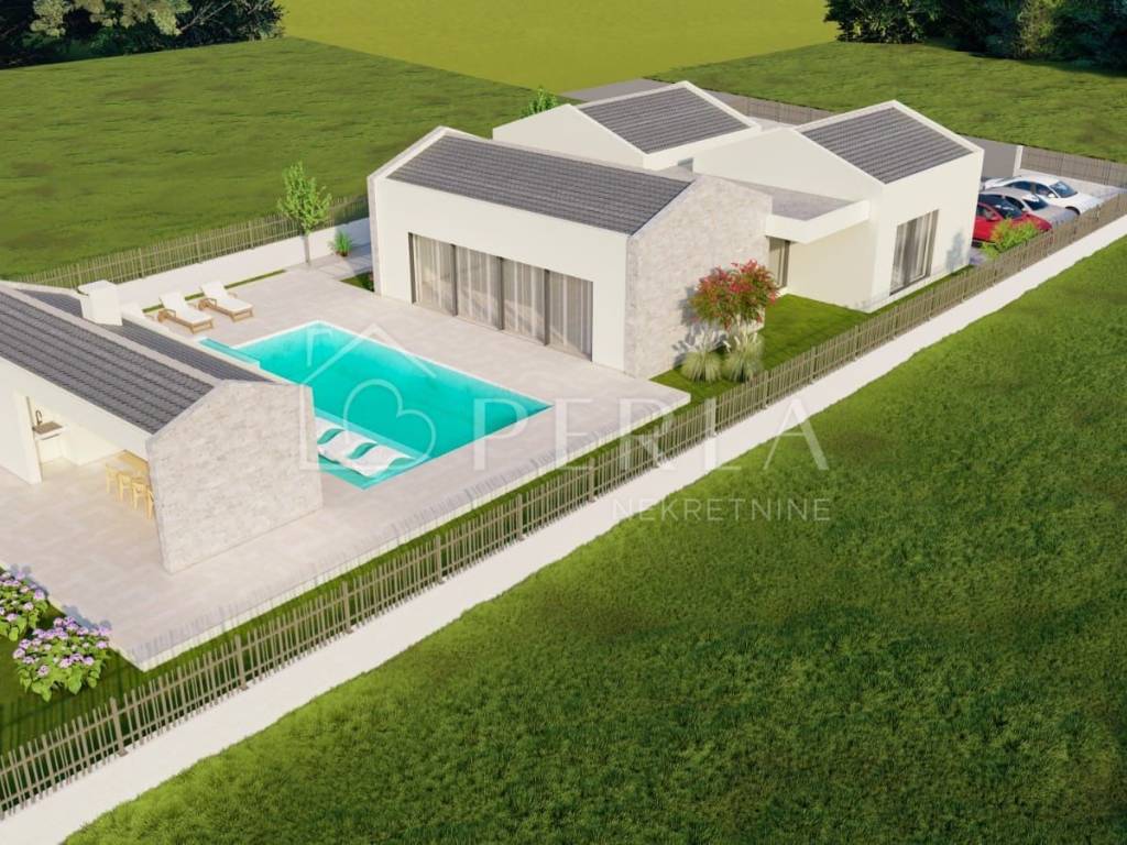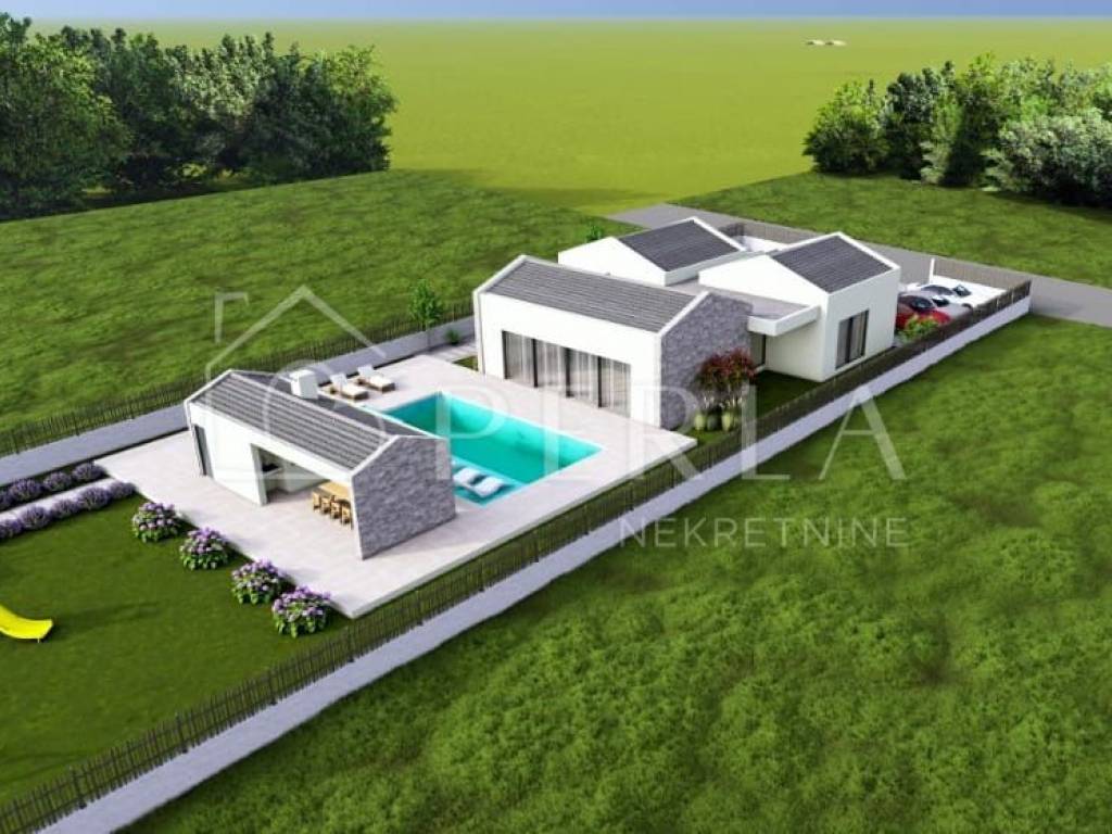 U blizini Zadra u mjestu Zemunik Donji prodaje se građevinsko zemljište od 2809 m2 s projektom sa kuću s bazenom.