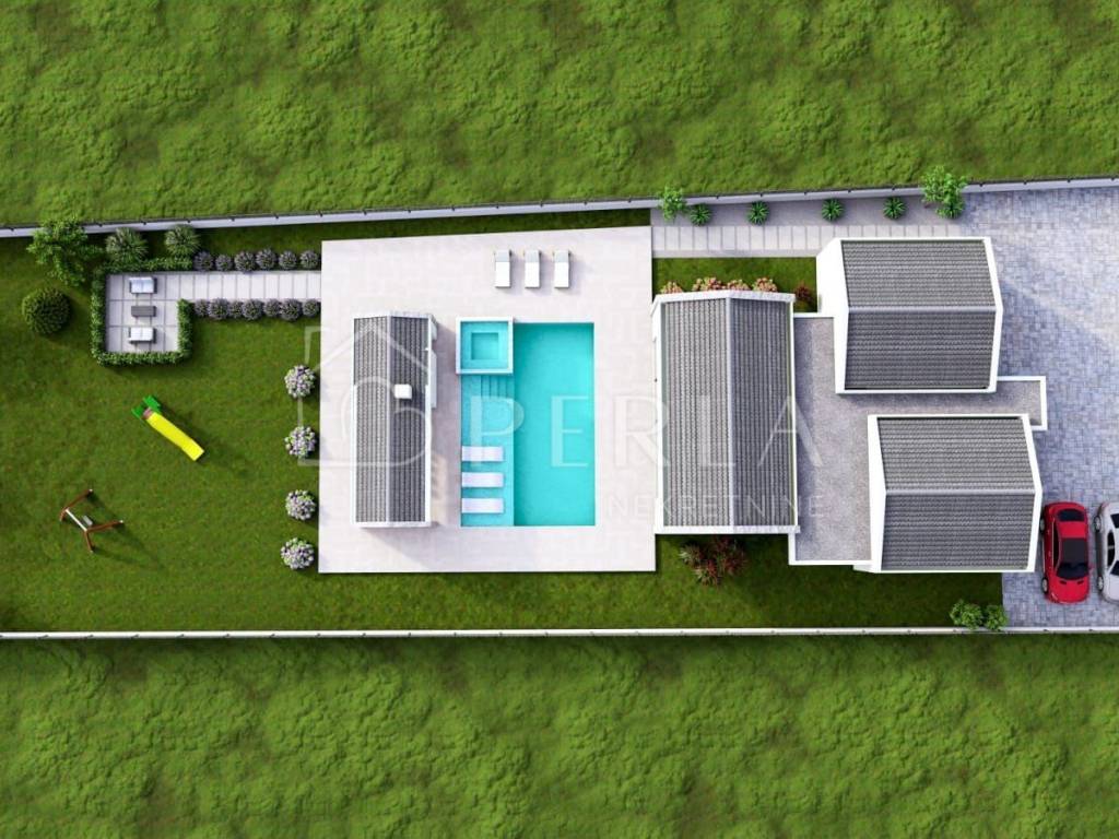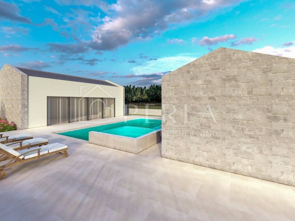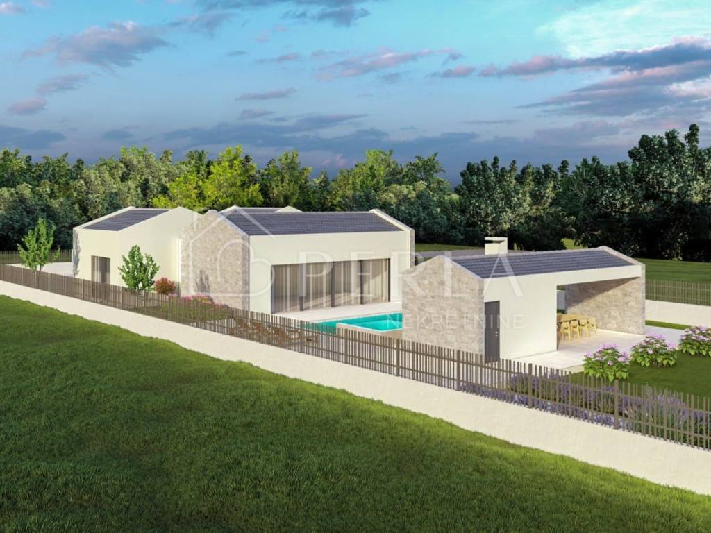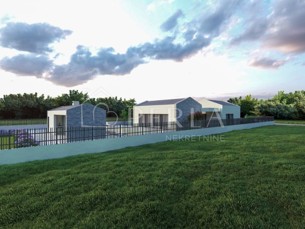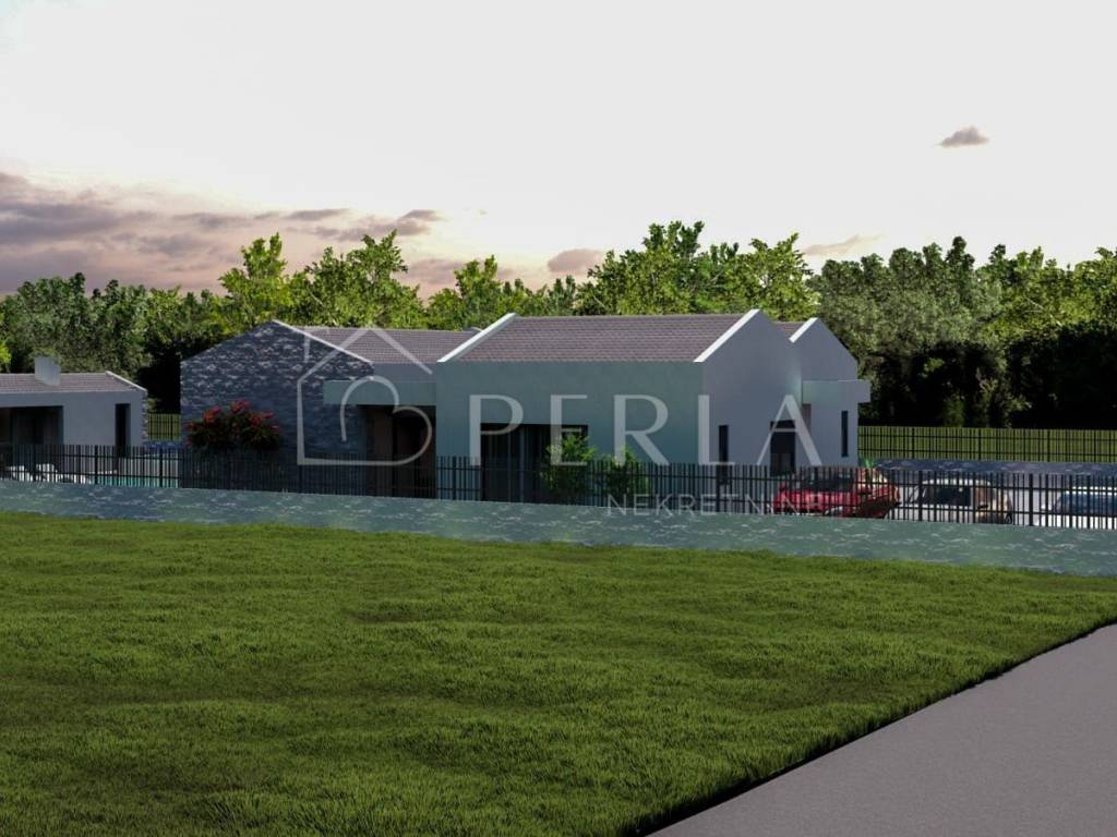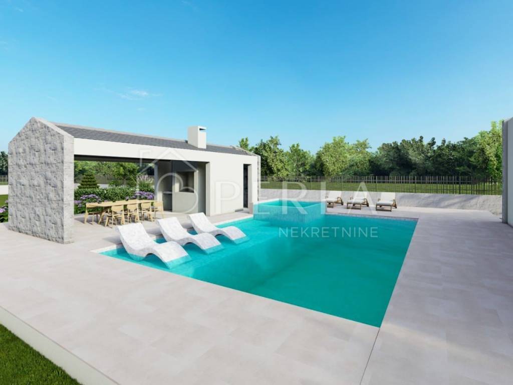 U blizini Zadra u mjestu Zemunik Donji prodaje se građevinsko zemljište od 2809 m2 s projektom sa kuću s bazenom.
