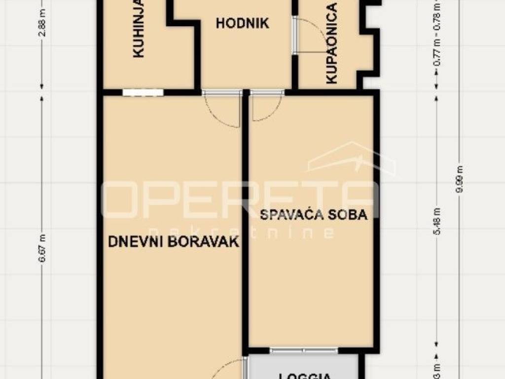 Stan se sastoji od prostranog dnevnog boravka s kuhinjom i blagovaonicom, spavaće sobe, kupaonice s WC-om, hodnika te loggie koja je idealna za jutarnju kavu ili večernji odmor.