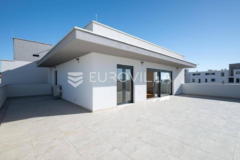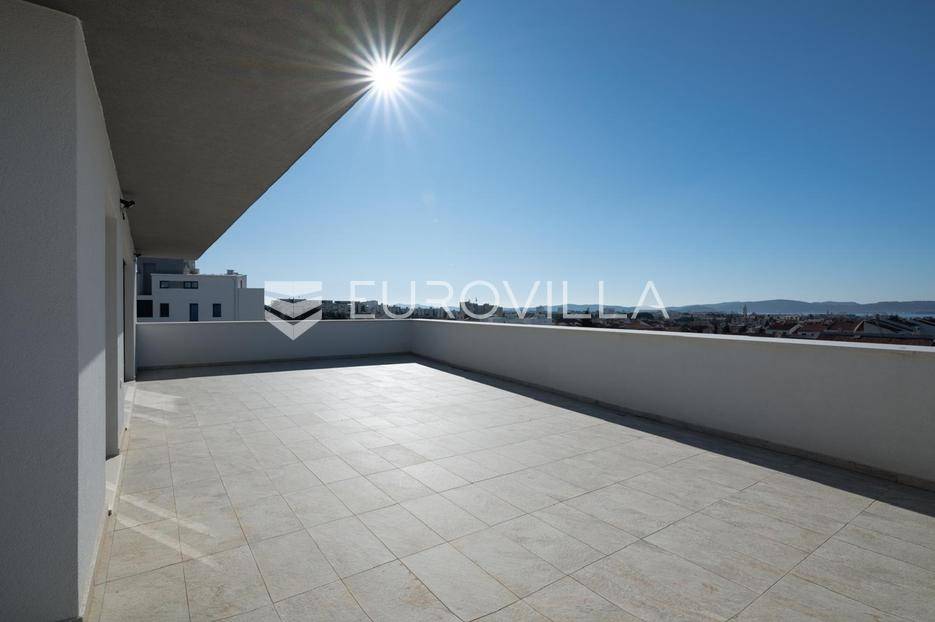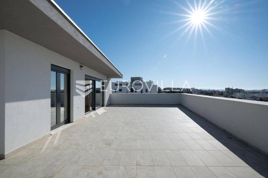 Zadar, Belafuža, trosoban stan ukupne površine 138,77 m2 nalazi se na trećem katu stambene zgrade.Sastoji se od ulaznog prostora, tri komforne spavaće sobe, dvije kupaonice, kuhinje, blagovaonice i dnevnog boravka otvorenog koncepta tenatkrivene i nenatkrivene terase, idealne za druženje i blagovanje.Ukupna zatvorena površina stana iznosi 92.14 m2.Stanu pripada jedno zatvoreno garažno parkirno mjesto, te parkirno mjesto u garaži.Oprema:PVC stolarija s IZO staklimaklimatizacijski uređaji u svim prostorijama ( u dnevnom boravku Daikin podna klima)električno podno grijanje u kupaonicamavideo - portafonprotupožarna i protuprovalna vrataparket i keramika vrhunske kvaliteteStan se nalazi u mirnom dijelu grada, u blizini svih sadržaja potrebnih za svakodnevi život kao što su škole, vrtići, tržnica, trgovine, pošta, banka i drugo.Uredno vlasništvo.Više informacija na upit.