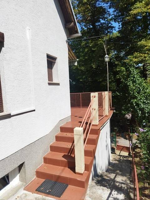 Stubičke Toplice - nasuprot ( blizini ) hotela Matije Gupca prodajemo samostojeću kuću u slijepoj mirnoj ulici. Trenutno je uređeno za najam i prihvat do 15 radnika. Kuća ima 6 soba, 2 kupaonice, 2 kuhinje s blagovaonicom i veliku nenatkrivenu terasu. Grijanje je na struju ( radijatori ). Moguće je prenamijeniti u dva stana sa odvojenim ulazima. Renovirane instalacije, struja, kupaonice...KUPCI NE PLAĆAJU PROVIZIJU AGENCIJI!