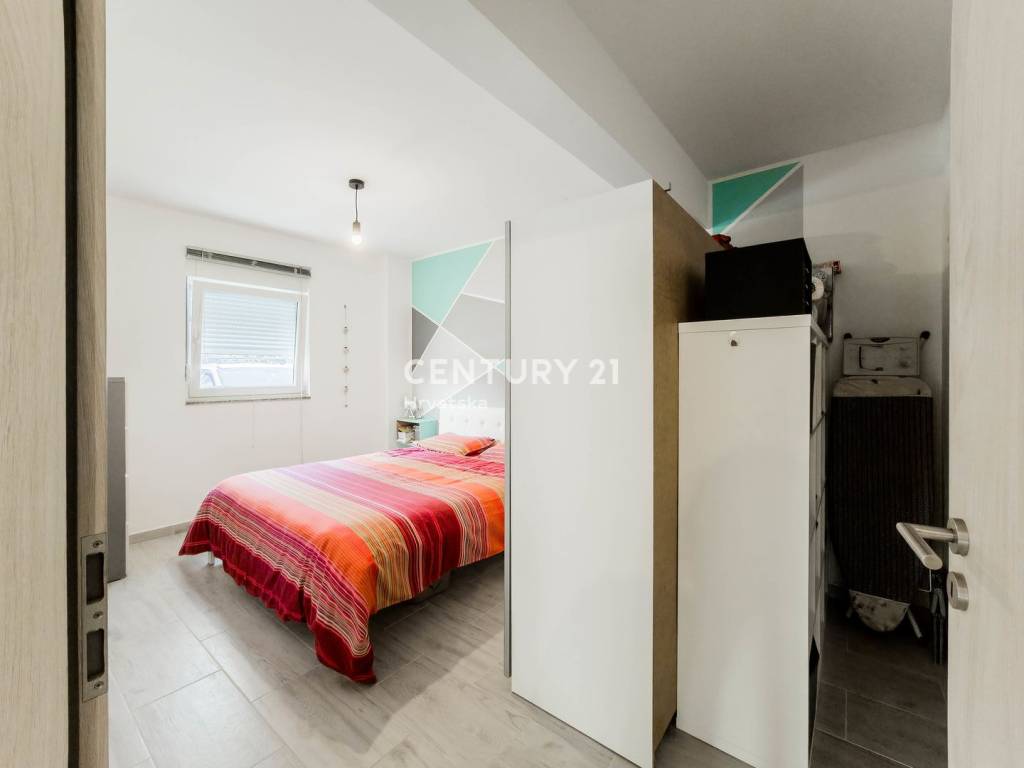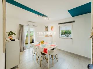 Stan je potpuno namješteni i opremljeni te je odmah useljiv što uključuje namještenu i opremljenu kupaonicu sa tušem, kuhinju sa ugradbenim uređajima, veliki hladnjak, blagovaonski stol i stolice sa komodom, dnevni boravak sa sjedećom garniturom, regalom, 2 namještene spavaće sobe sa krevetima i ormarima, vrtna garnitura na terasi.