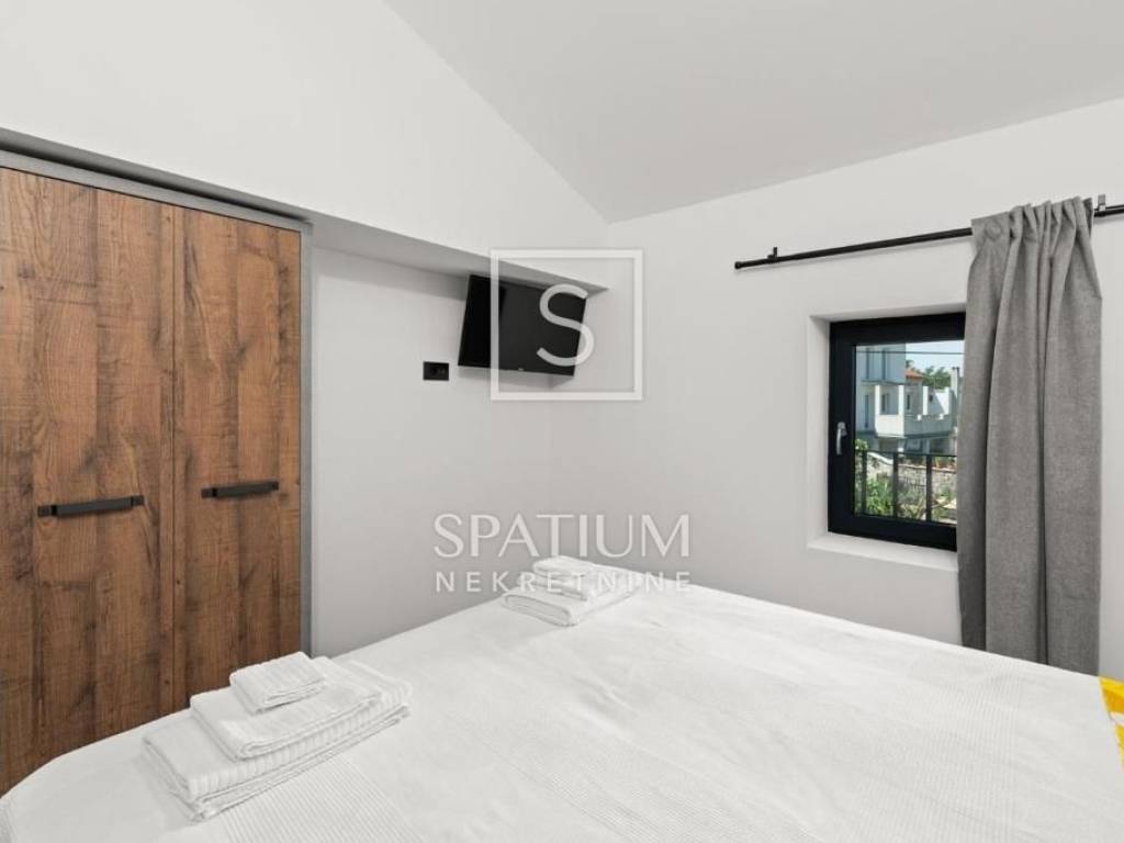 POREČ, we have received a stone detached house with a swimming pool with a total area of 538 m2. The ground floor consists of an open concept living room, kitchen and dining room with one bedroom, bathroom and laundry room. On the first floor there are two bedrooms, each with its own bathroom. In the courtyard there is a sundeck with a swimming pool and a covered summer kitchen with a fireplace, and one parking space. The property has been renovated, all rooms have air conditioning for heating and cooling and underfloor heating with all new electricity and water installations. The environment is decorated with lawns, Mediterranean plants and olive trees. Due to its microlocation and equipment, this property offers ideal conditions for engaging in tourism activities as well as for long-term family enjoyment.