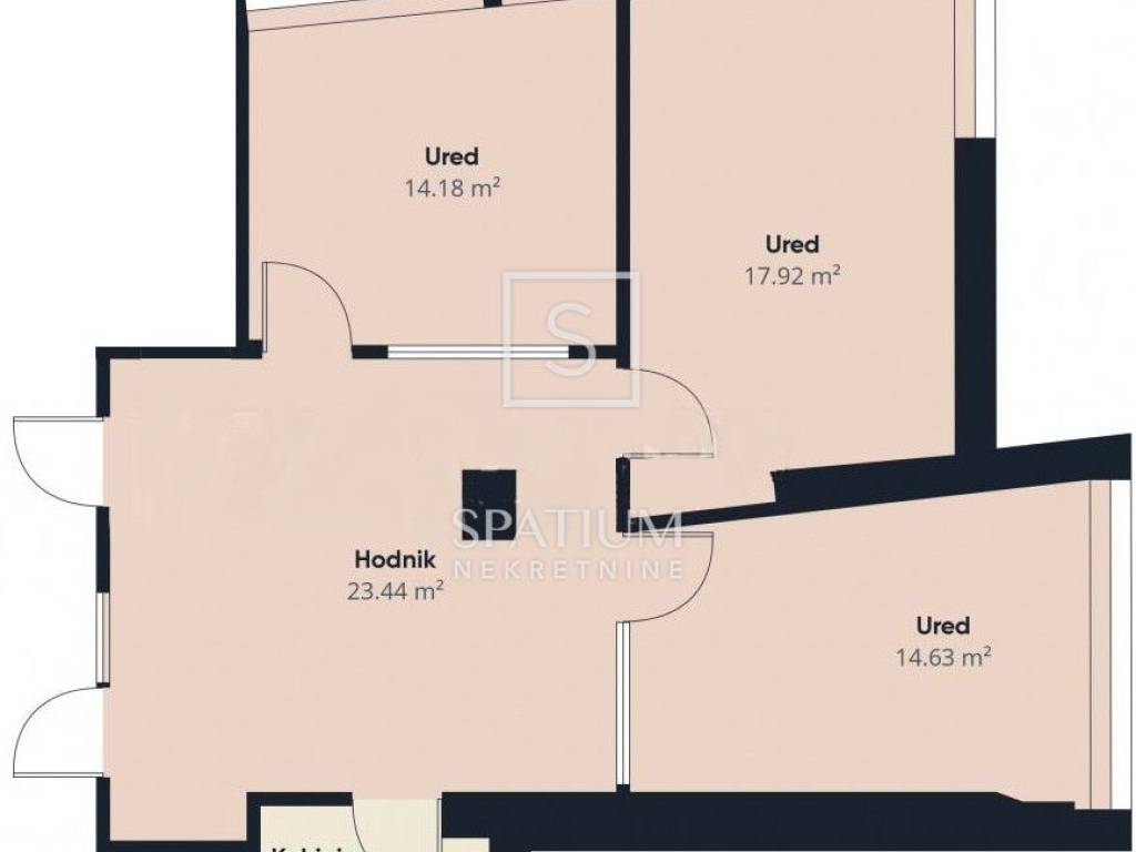 ⦁ 3 uredskih prostorija različitih kvadratura (17,92 m², 14,63 m², i 14,18 m²),