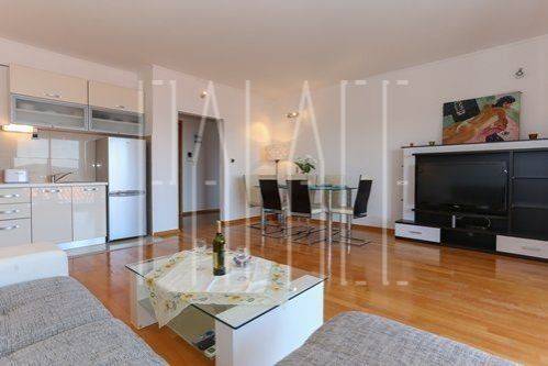 We are mediating in the rental of a penthouse with a panoramic sea view near Hotel Medena in Seget Donji. It is located on the top floor of a small residential building. The penthouse spreads over two floors and has a total living area of 170 m2, consisting of a kitchen with a dining area and a large living room, three bedrooms, two bathrooms, a hallway, and a large terrace. The upper floor is not furnished. It includes one outdoor parking space. The apartment is rented fully furnished until 15.06.2026.