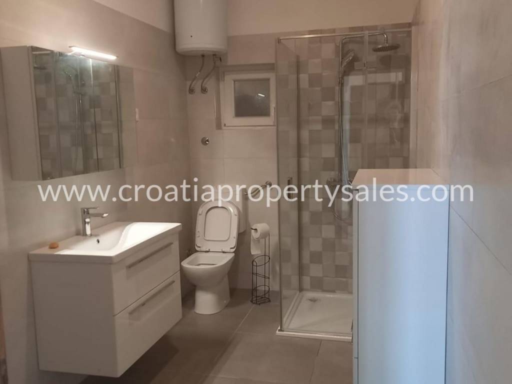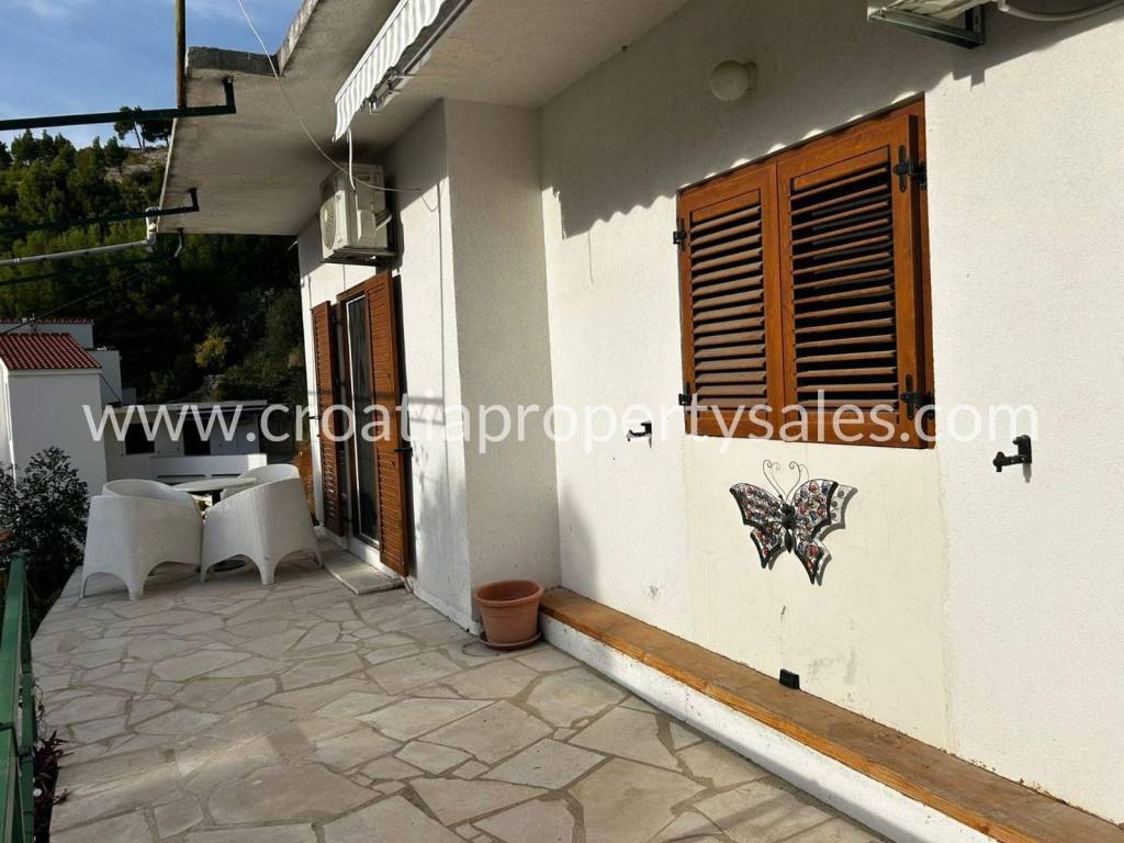 A single-story house near Omiš.We are offering for sale a detached house with an area of 100 m2, located on a 489 m2 plot in a quiet neighborhood not far from Omiš.The house is in an excellent location with direct access to the main road, and the sea is only 120 meters away.What makes this offer particularly interesting is the possibility of adding two more floors, which opens numerous opportunities for the future owner.The built ground floor consists of a living room, kitchen with dining area, two bedrooms, and bathrooms. The yard offers enough space to design according to your own wishes, including the construction of a pool, terraces, and additional parking. Thanks to the combination of a peaceful location, proximity to the sea, and the possibility of expansion, this property represents an ideal opportunity for living or investing in an area that combines natural beauty, closeness to the city, and the Mediterranean lifestyle.