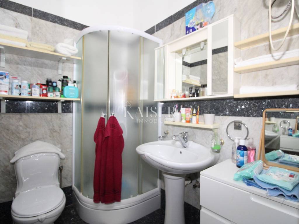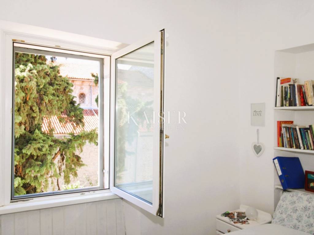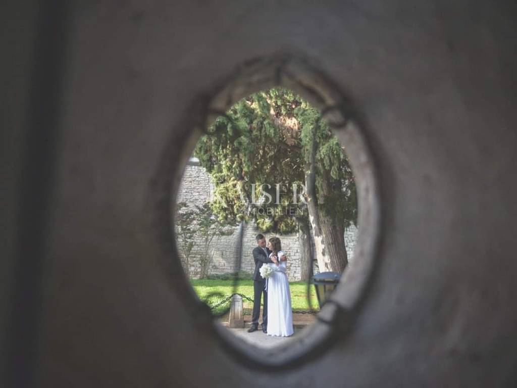 Pula is the oldest and largest city on the Istrian peninsula, known for its rich history, Roman monuments and unique blend of tradition and modern life. The city is adorned with the imposing Arena, one of the best preserved Roman amphitheatres in the world, while the picturesque waterfront, numerous restaurants, cafes and cultural events give a special Mediterranean atmosphere. Pula offers the ideal balance between historical charm and modern amenities, with crystal clear sea, beaches and a variety of opportunities for enjoyment throughout the year. Kaiser Immobilien is proud to present a unique property in the very heart of Pula – a spacious 104 m² apartment dating back to the 18th century and located in a historic Venetian building with a rich past and recognizable architecture. The apartment is located on the second floor, and as the only apartment on that floor, it offers maximum privacy and peace, while the building itself has only two other apartments on the first floor. Upon entering the apartment, you are greeted by a spacious staircase of almost 10 m², which offers plenty of space for a wardrobe and practical storage. From the hallway of 4.38 m², with an additional storage room of about 3 m², a door opens onto a beautiful terrace of 20 m². The terrace, equipped with a built-in barbecue, faces the interior of the building, which ensures peace and intimacy, and also provides shade during hot summer days. The living room of 22.80 m² exudes history and special charm, and its most valuable detail is certainly the original Venetian fresco from the 18th century located above the exit to a small French balcony in the Baroque style with a view of the Cathedral of the Assumption of the Blessed Virgin Mary. From the living room you enter the first bedroom of 14.30 m², equipped with a built-in wardrobe and also with a view of the historic city center. In the second part of the apartment there is a bathroom with shower and toilet, then a kitchen of 13 m² that retains elements of the older building, as well as a second bedroom of 14.30 m2. This room is a special gem because it is adorned with the original fresco "San Marco Venezia" made in the secco technique, which has aroused interest even in Italian museums. It offers a beautiful view of Pula, which further emphasizes the exclusivity of the space. The apartment is decorated with a combination of granite and laminate floors, is equipped with high-quality PVC joinery with excellent insulation, and heating and cooling are provided by air conditioning. For those who want an extra dose of ambiance, there is a chimney in the living room with the possibility of installing a fireplace. In 2022, the apartment was completely renovated and renovated, and is being sold furnished. The apartment also includes two storage rooms on the ground floor, totaling about 8 m², which can be used for additional storage or even as a small business space, such as a souvenir shop. Although the building does not have its own parking lot, a public parking zone is available just a hundred meters away for a monthly ticket of €13. The location of this property is one of the best in the city – the sea is only 90 meters away, restaurants and cafes are in the immediate vicinity, the Arena is 400 meters away, and the waterfront, parks, playgrounds, schools and all necessary amenities are within a few steps. This is not just an apartment, but an opportunity to buy a piece of history. The building itself, a Venetian construction from the 18th century, bears the hallmarks of Baroque architecture, with relief symbolic figures of strength, justice, prudence and moderation, attributed to the master Dominic from around 1440. The historical significance, artistic details and perfect location make this property a true gem, whether you are looking for your own living space or as an investment with great potential. Proximity to amenities: Restaurant- 2 m Cafe- 2 m Market- 600 m Sea- 90 m Marina ACI- 150 m High school- 130 m Bus station- 1.1 km Bus stop- 250 m Sights- 2 m Airport- 7.5 km Distance to larger cities: Pula- Ljubljana: 200 km Pula- Vienna: 580 km Pula- Budapest: 600 km Pula- Prague: 900 km Pula- Munich: 600 km Pula- Zagreb: 264 km The agency commission for the buyer is 3% + VAT and is paid in the case of purchasing a property, upon conclusion of the first legal act. Interested buyers can view only with the prior signing of a real estate brokerage contract. ID-CODE: 127-163 If you would like to visit the property in person, please contact: Jennifer Hofmann E-mail: jennifer@kaiser-immobilien.hr Tel: +385-91-515-0887 http://kaiser-immobilien.hr/