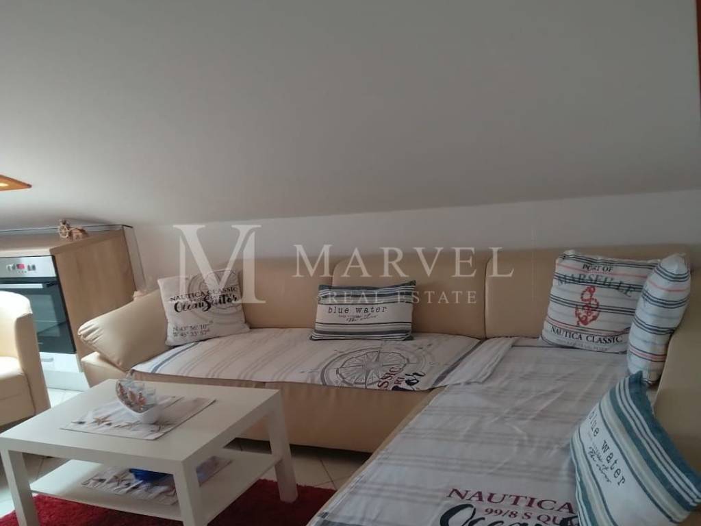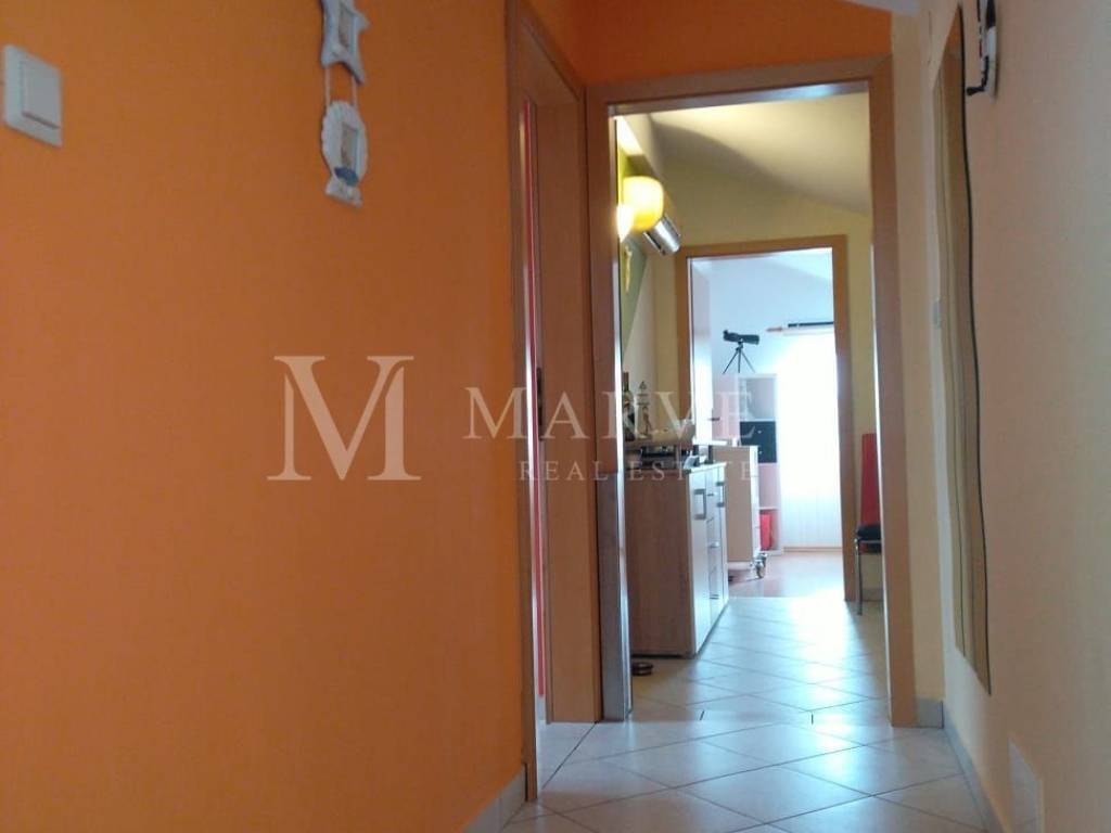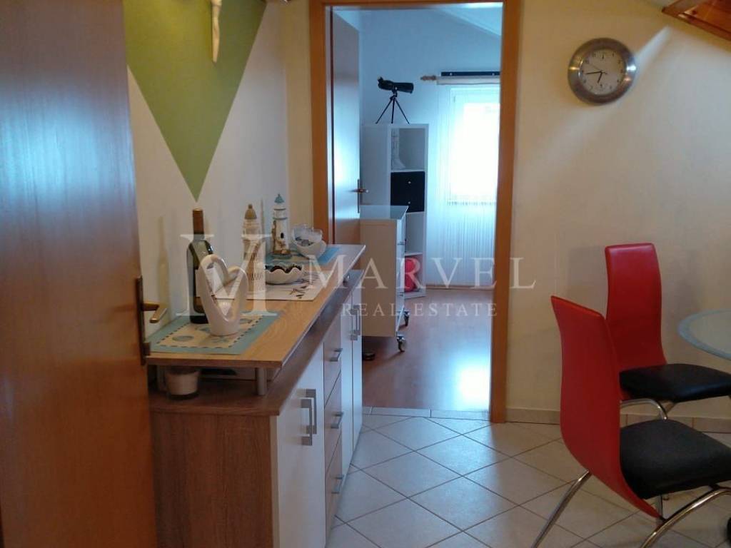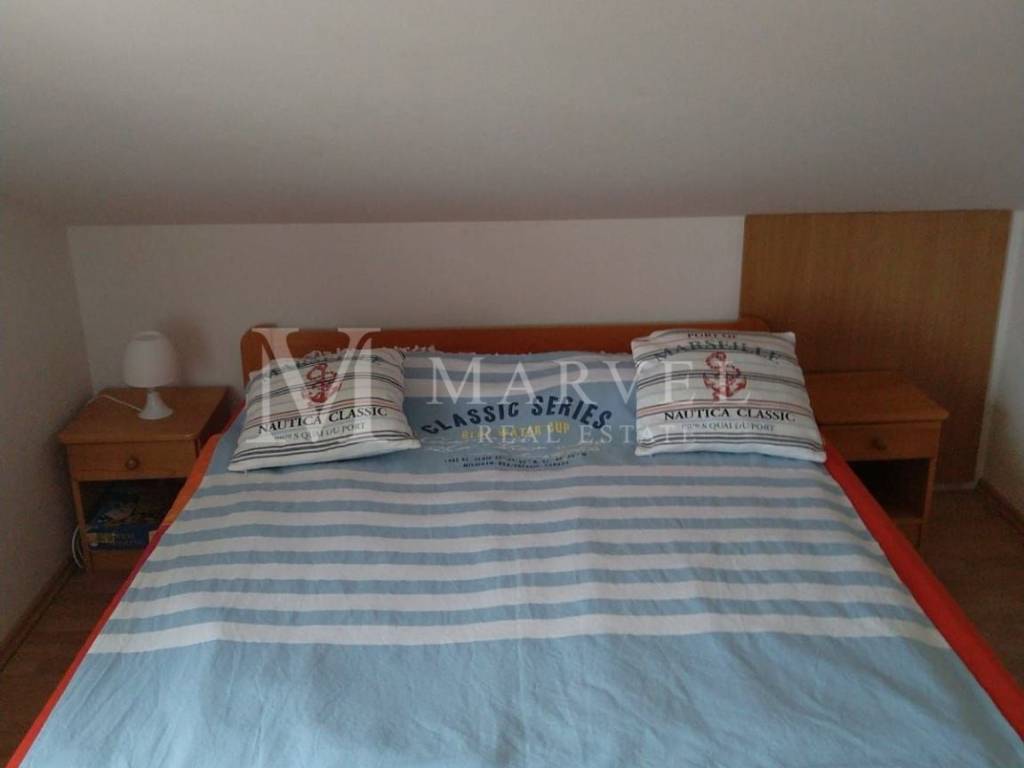 For sale: apartment located in the attic of a family house with three residential units, in Malinska on the Island of Krk. The apartment covers a total area of 64 m and consists of: