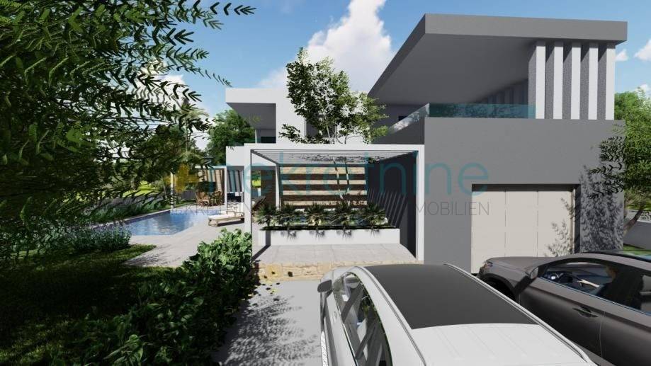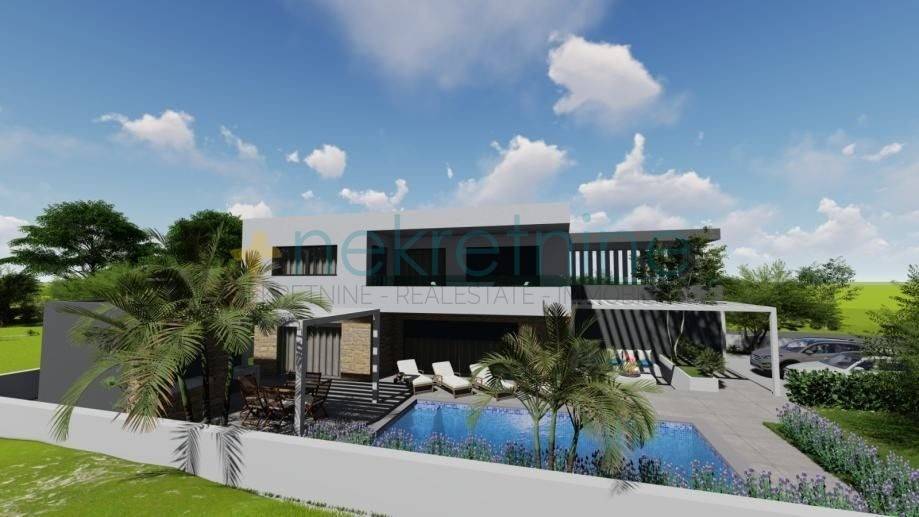 Sadržaj: 5 spavaćih soba, 6 kupaonica, dnevni boravak, terasa (160 m), vrt, bazen (36 m), kamin s roštiljem (42 m), garaža + 4 parkirna mjesta