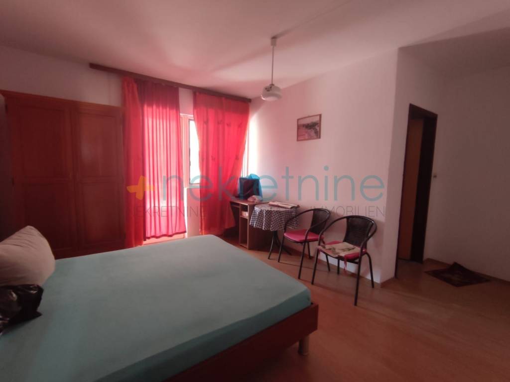 U prizemlju se nalazi veliki poslovni prostor od dva dijela, glavni dio od 128 m2 sa dva sanitarna čvora, te drugi poluzatvoreni prostor od 116 m2. U stražnjem dijelu nalazi se dvorište i vrt koji mogu biti prenamjenjeni u vlastiti parking u pogledu bavljenja turizmom.