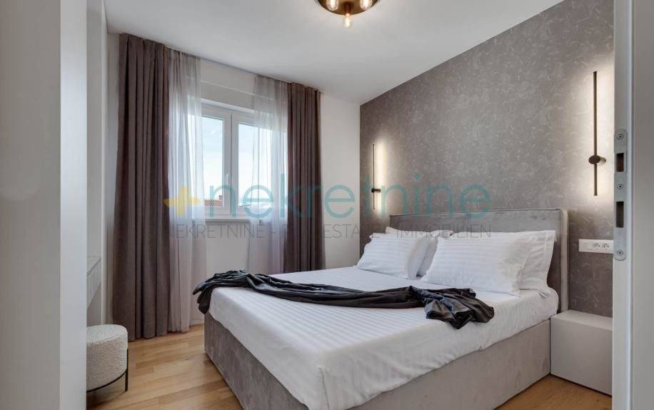 U prodaji je luksuzno novouređen stan u novogradnji od 113,45 m2. Nalazi se na drugom ujedno i posljednjem katu zgrade izgrađene 2023. godine.