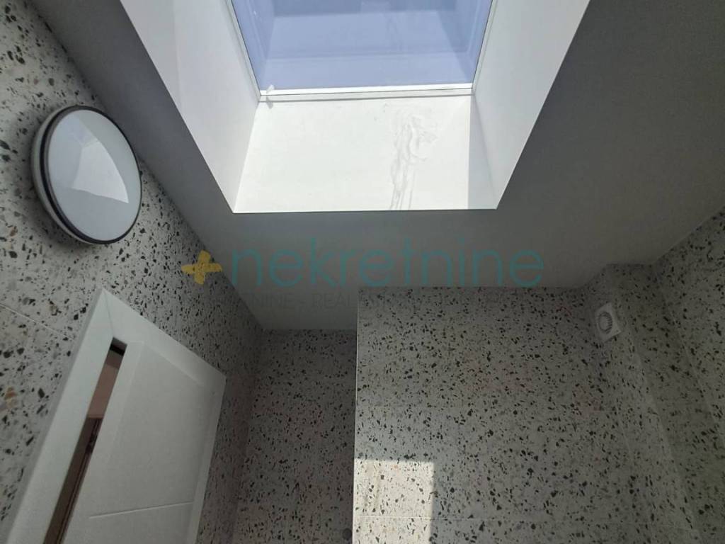 Apartman se sastoji od dvije etaže. U prizemlju se nalazi prostrani dnevni boravak povezan s kuhinjom i blagovaonicom u otvorenom konceptu, te gostinjski toalet. Na katu se nalaze dvije udobne i prozračne spavaće sobe te moderna kupaonica. Iz apartmana se pruža prekrasan pogled na more, što ovu nekretninu čini posebno privlačnom za boravak i opuštanje.