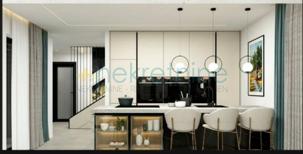 Smještena u mirnom i atraktivnom okruženju u neposrednoj blizini mora, ova moderna vila na dvije etaže nudi savršenu kombinaciju luksuza, udobnosti i prostranosti. S ukupnom stambenom površinom od 220 m, vila je dizajnirana za opušten i kvalitetan način života, uz obilje prirodnog svjetla i prostranih interijera.